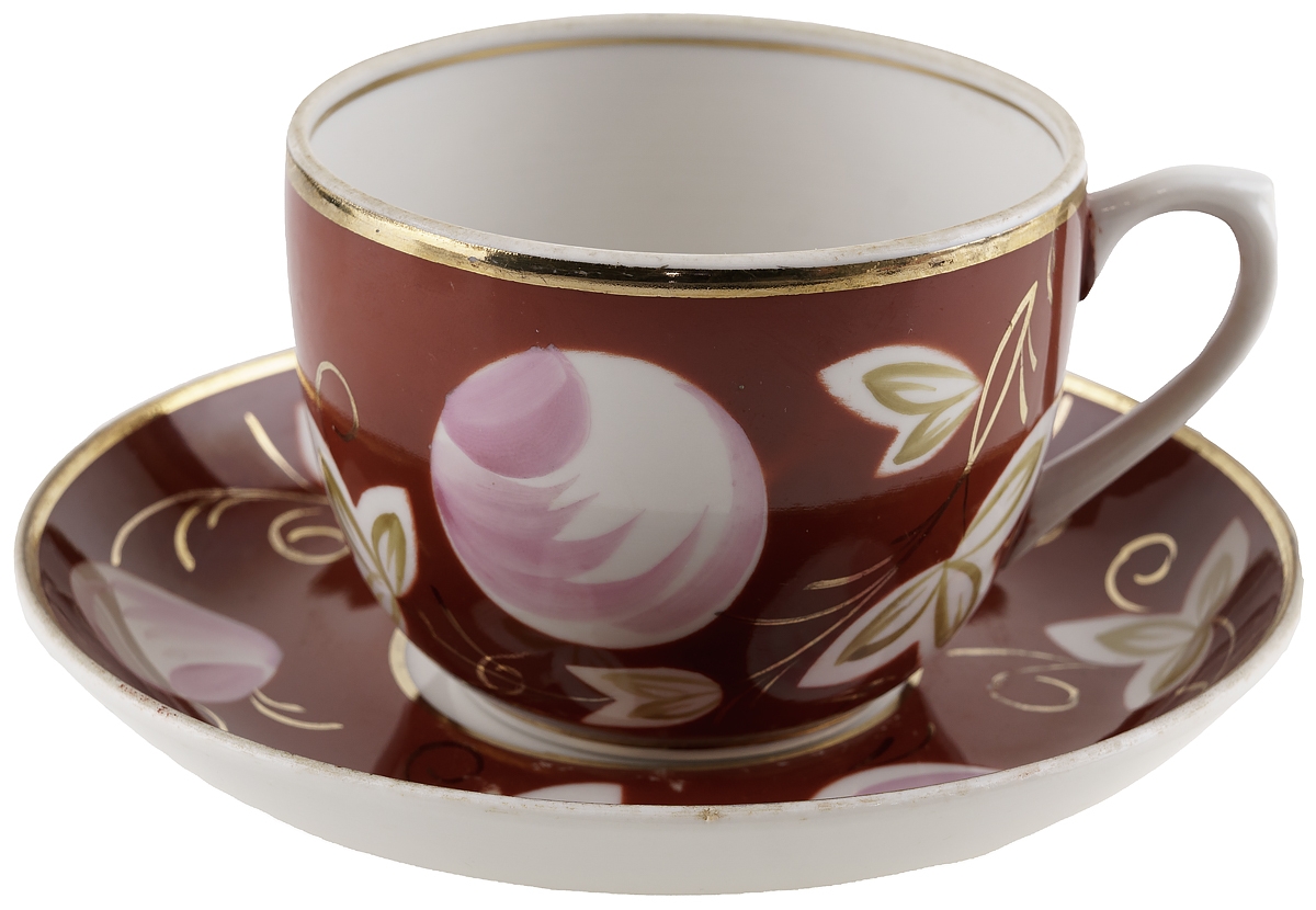 Чайная пара "Вишня", Фарфор, винтаж, Вербилки, СССР, 1954-1965 гг.(потертости)