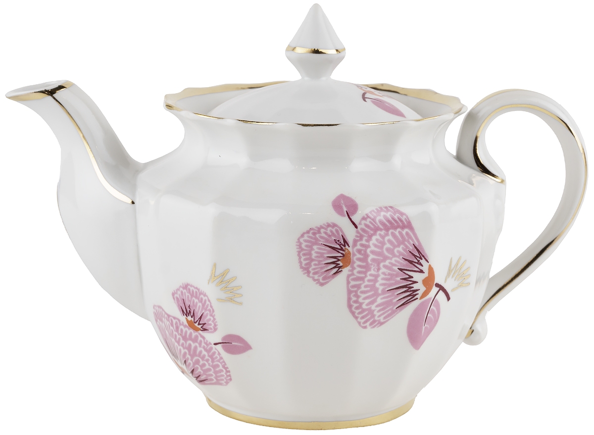 Изящный винтажный заварочный чайник "Розовый цветок" из тонкостенного костяного фарфора.