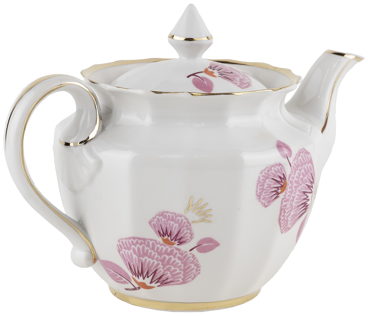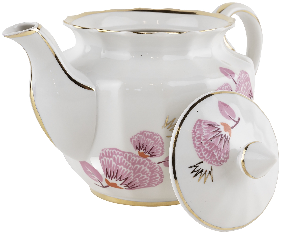 Чайник заварочный "Розовый цветок", фарфор, винтаж, Вербилки, СССР, 1954-1965 гг.