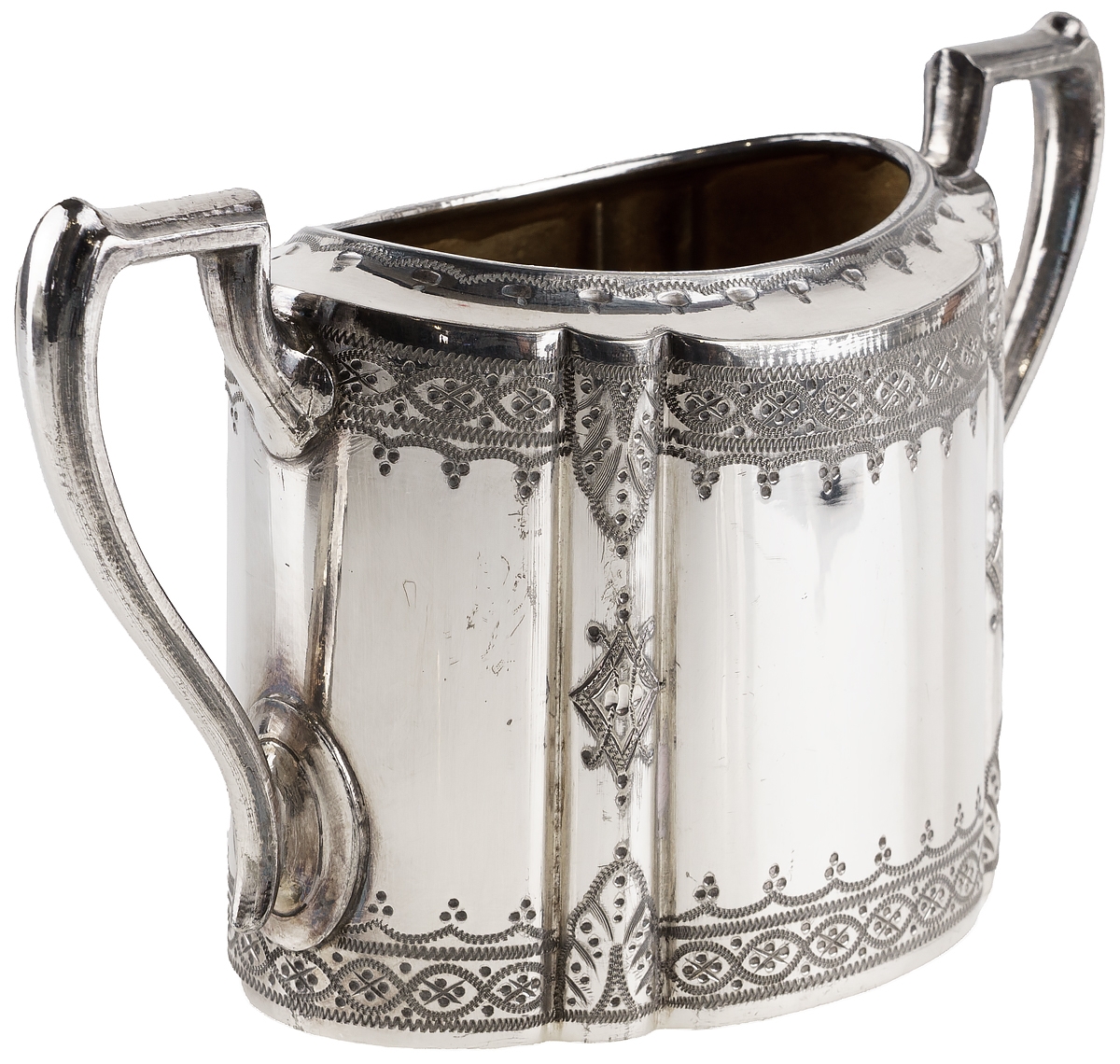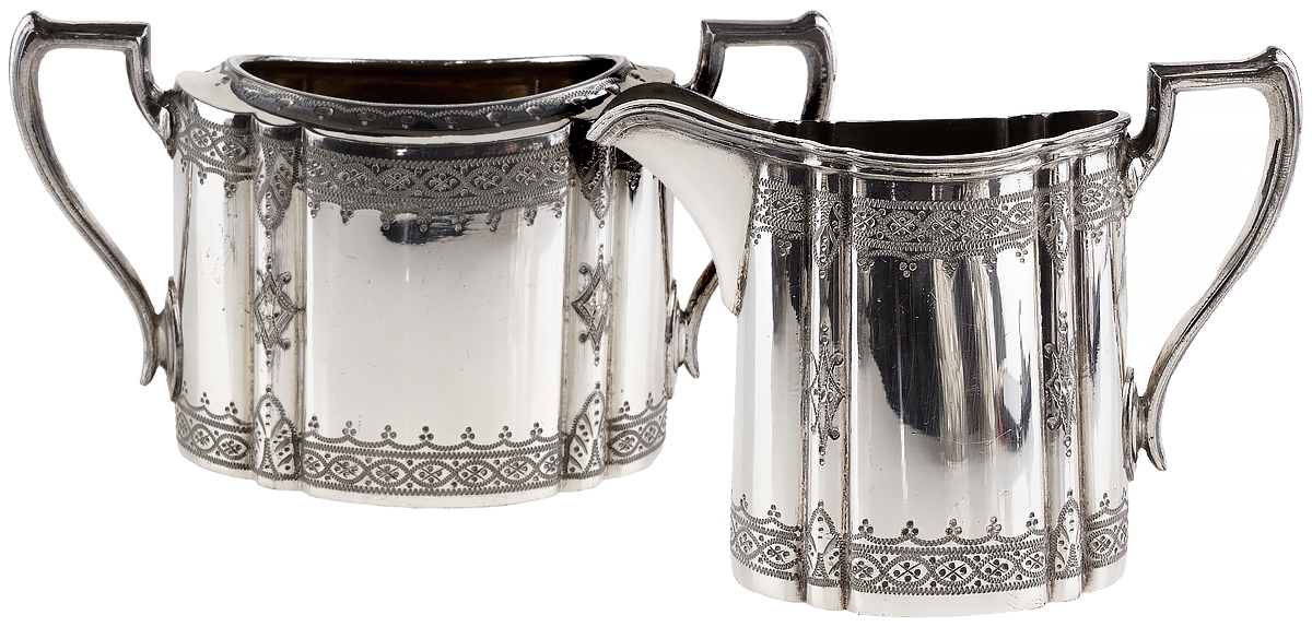 Сливочник и сахарница, набор для сервировки чайного стола антикварный. Металл, серебрение. Philip Ashberry and Sons, Sheffield. Металл, серебрение. Великобритания, конец 19 века