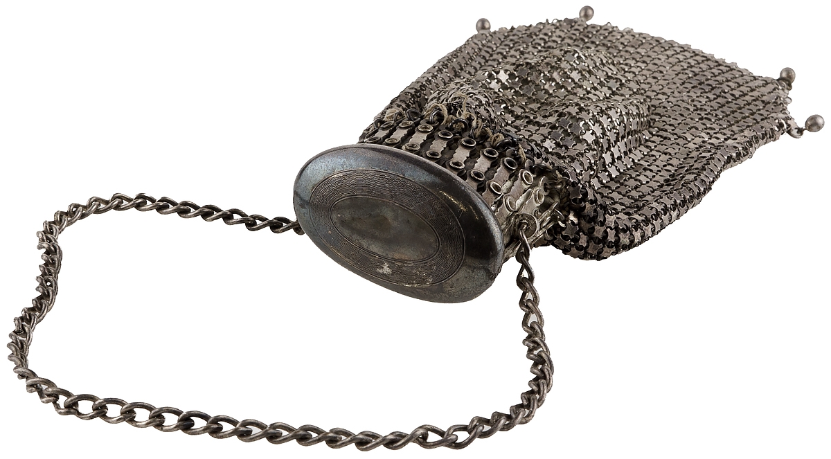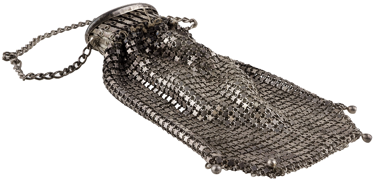 Сумочка дамская антикварная. Металл, кольчужное плетение. Западная Европа, конец 19 века.
