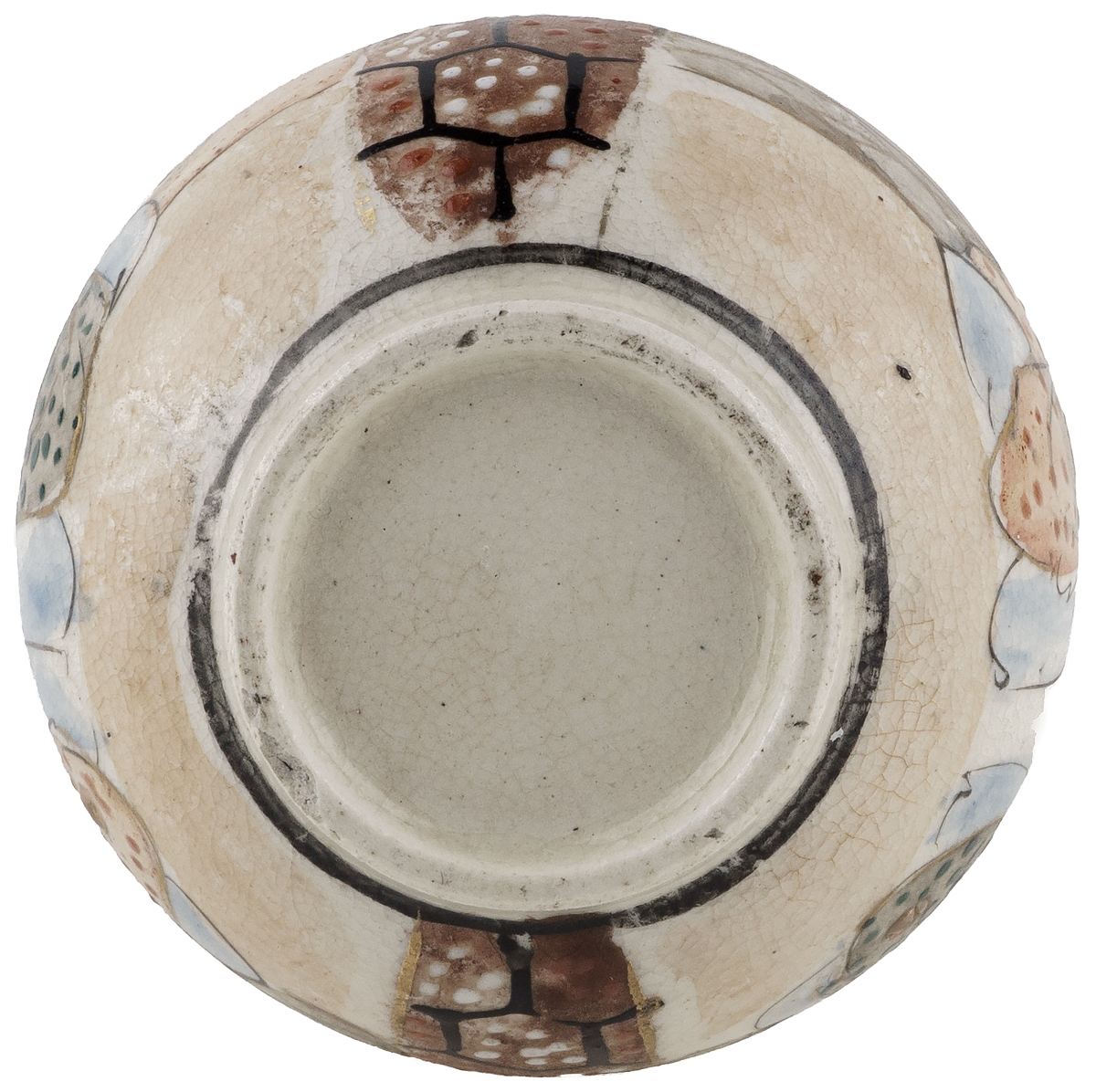 Сохранность хорошая. На ножке основания малозаметный скол. Кракелюр, незначительные потертости рисунка.