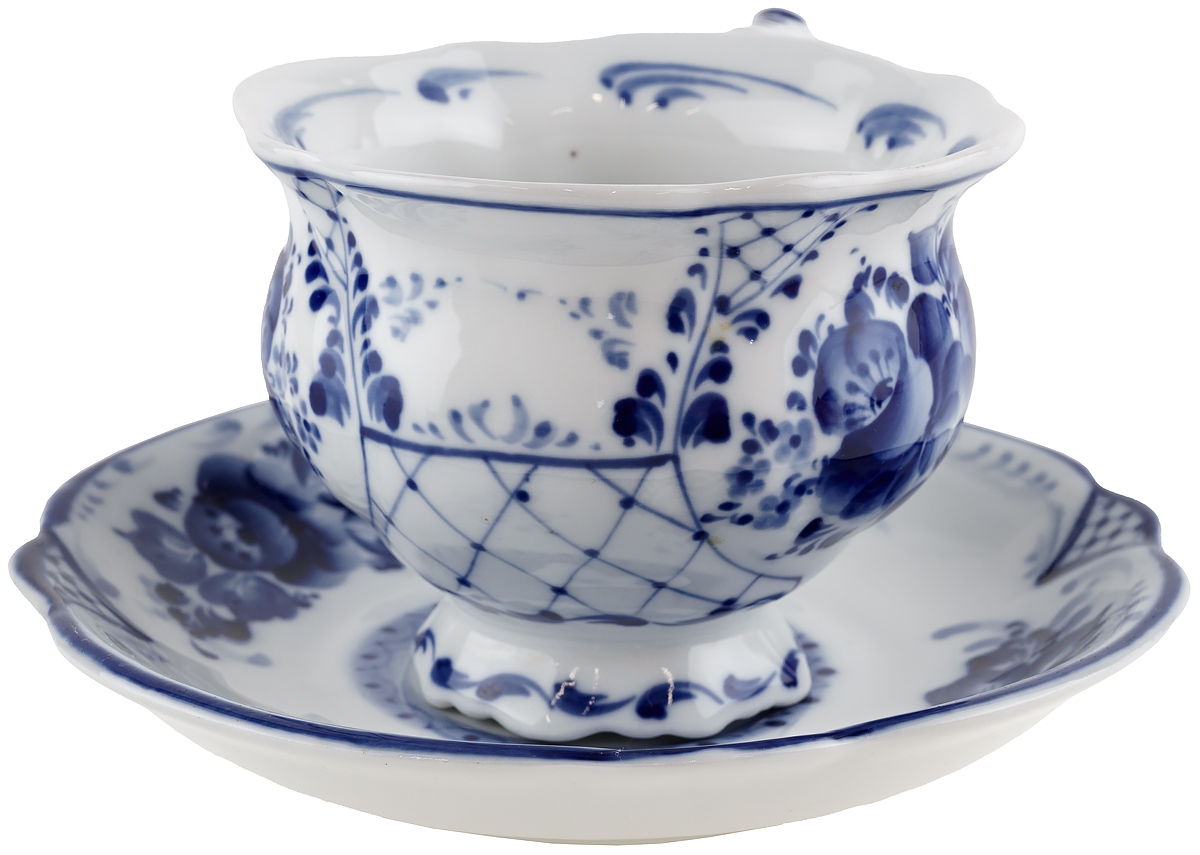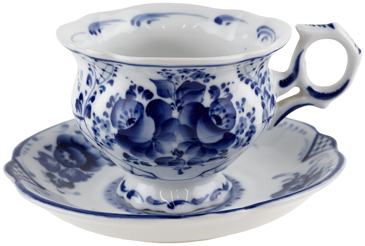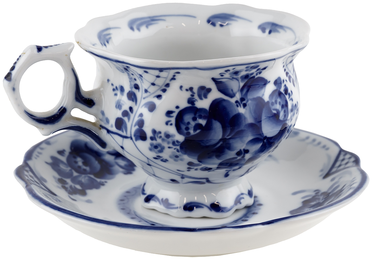 Чайная пара "Букет", фарфор, винтаж, Гжель, Россия, начало 21 века