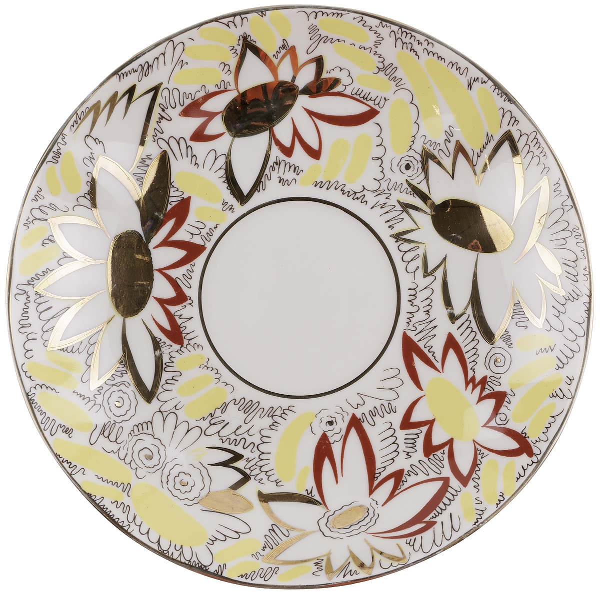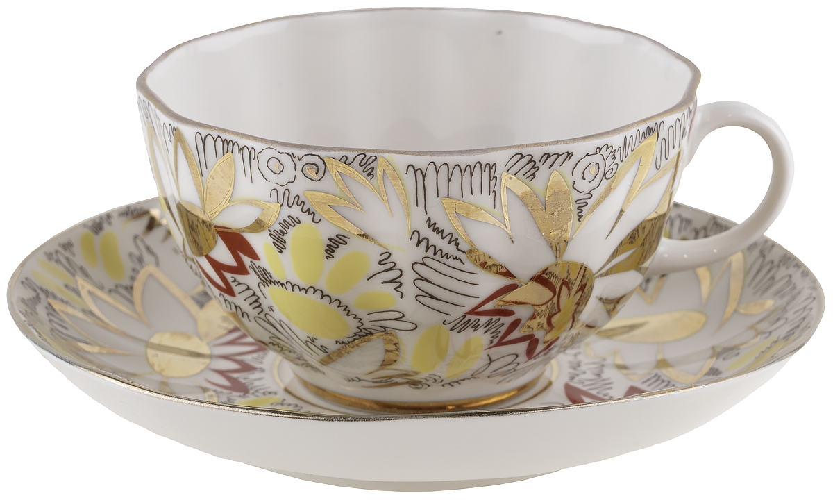 Чайная пара "Золотые ромашки", Фарфор, винтаж, желтая, ЛФЗ, Россия, конец 20 века