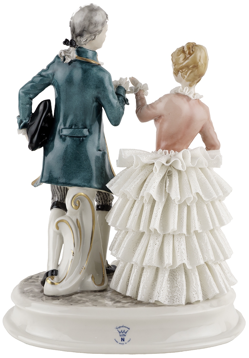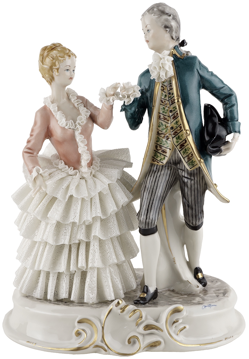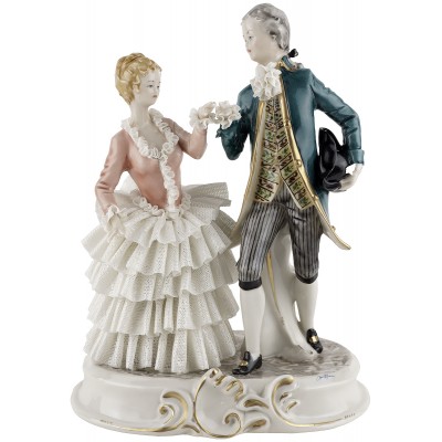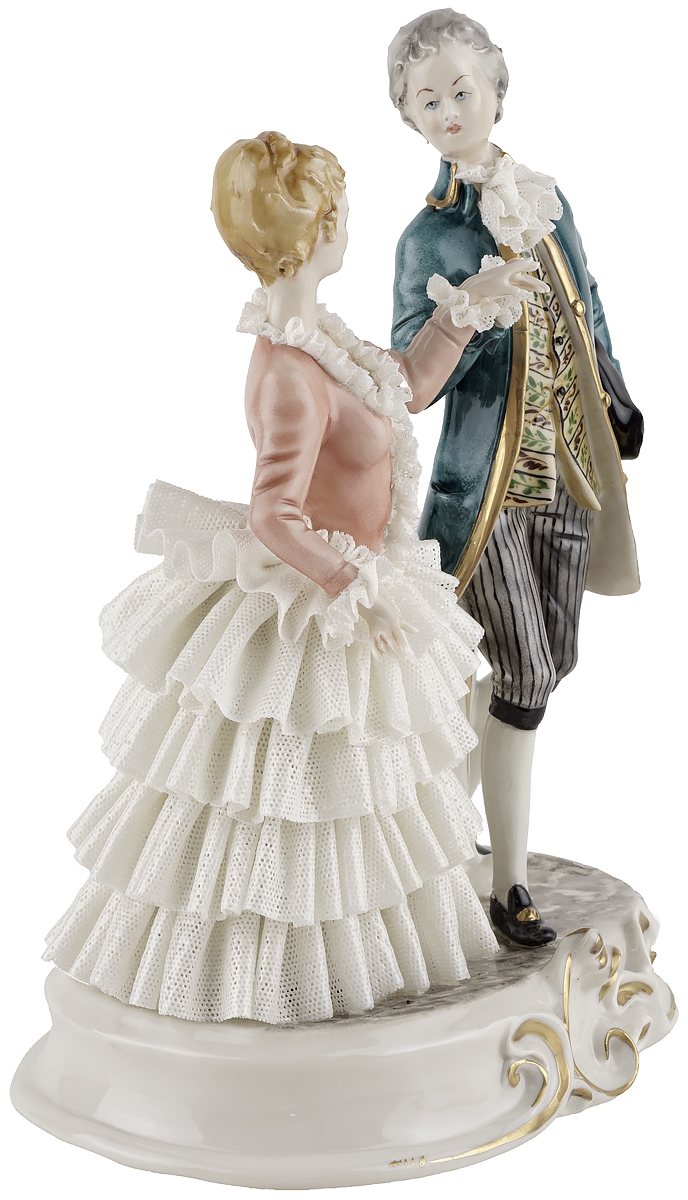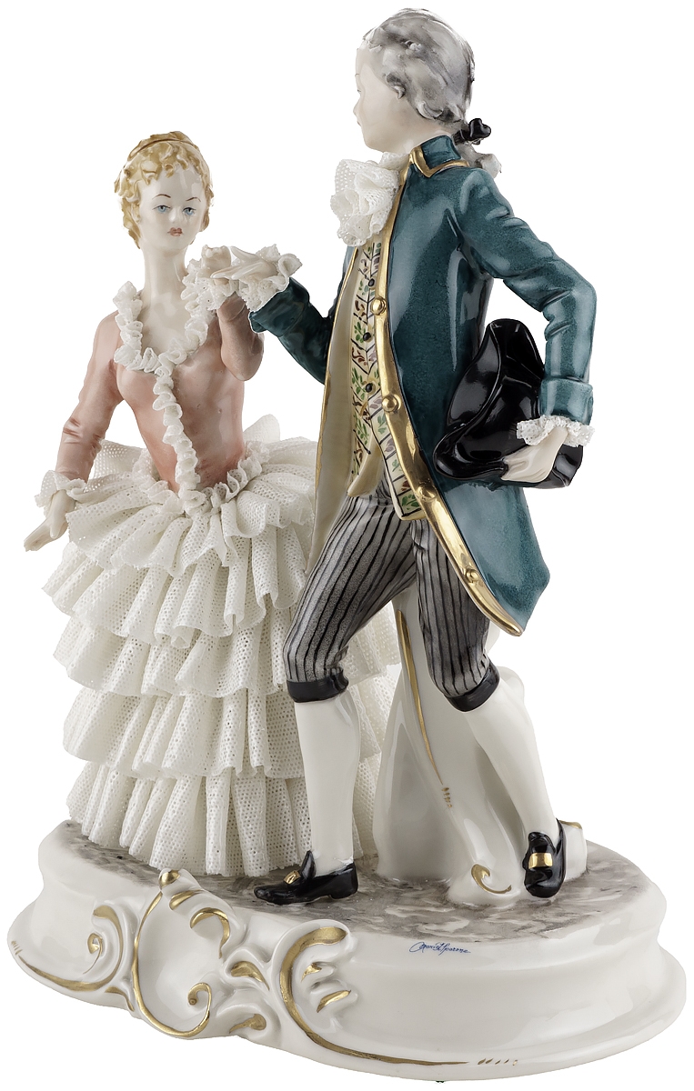 Статуэтка фарфоровая "Менуэт", Кружевной фарфор, Высота 25 см. Capodimonte, Италия, винтаж, 1960-е гг.