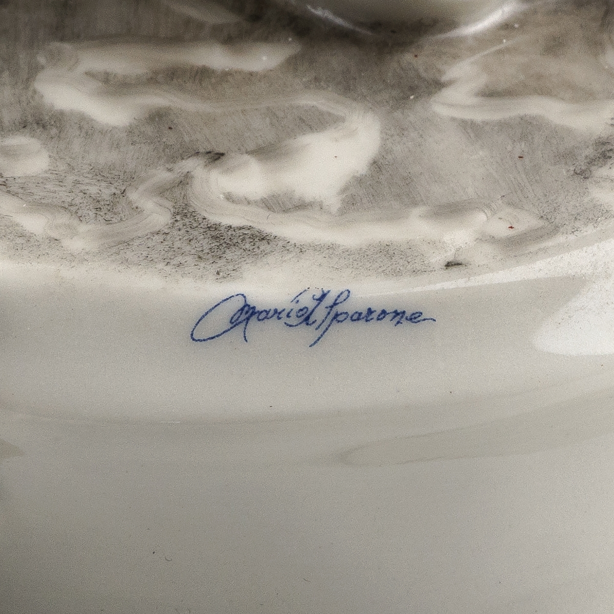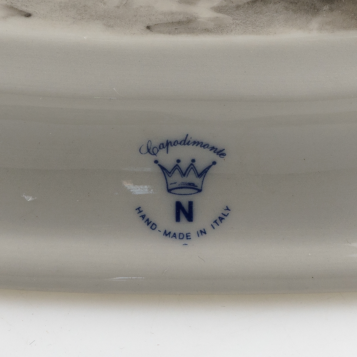 Маркировка: клеймо синего цвета на постаменте "Capodimonte" и подпись автора.