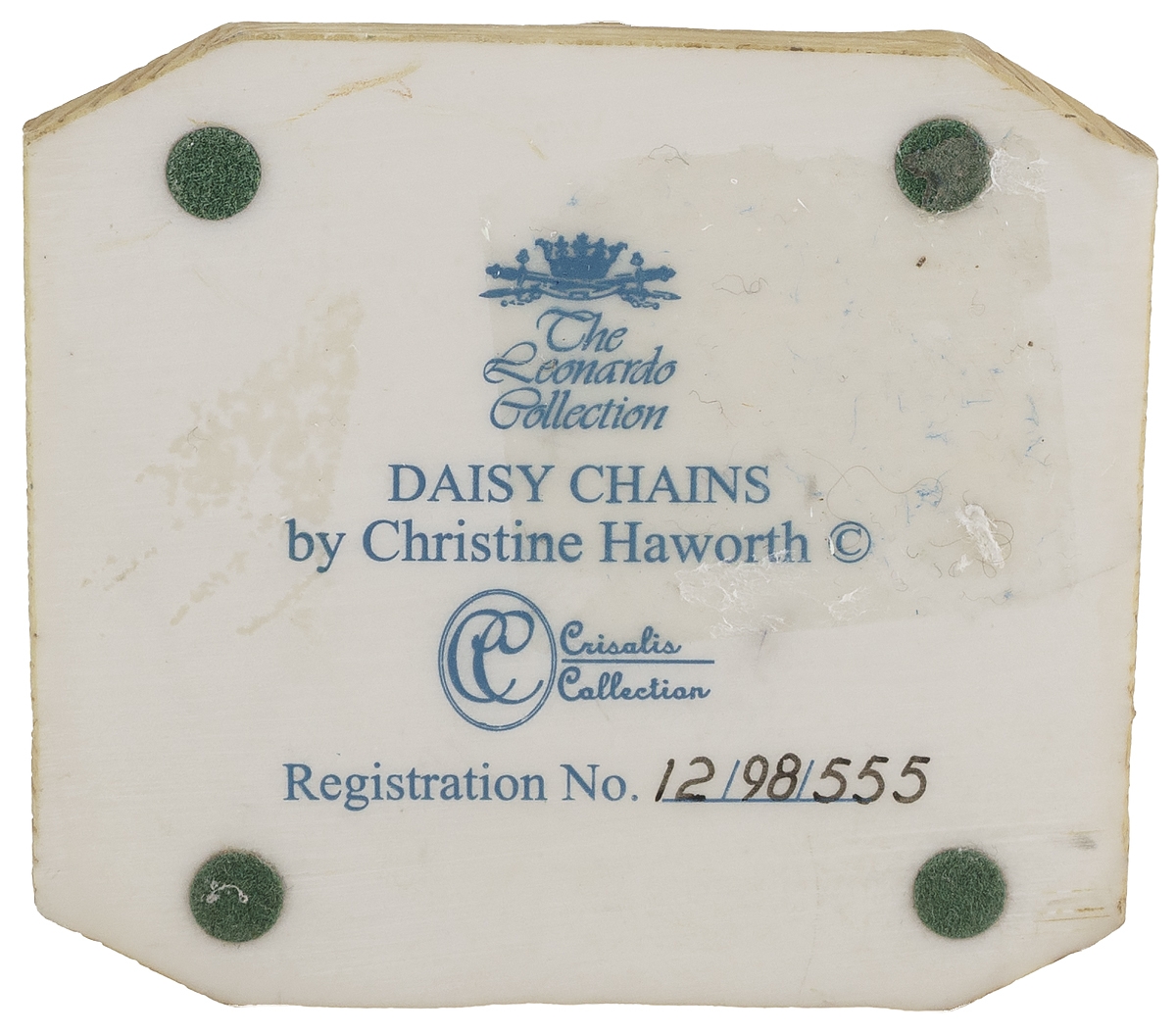 Маркировка: клеймо голубого цвета "The Leonardo collection", номер в серии.