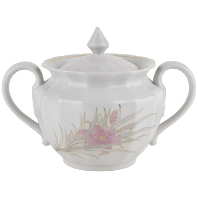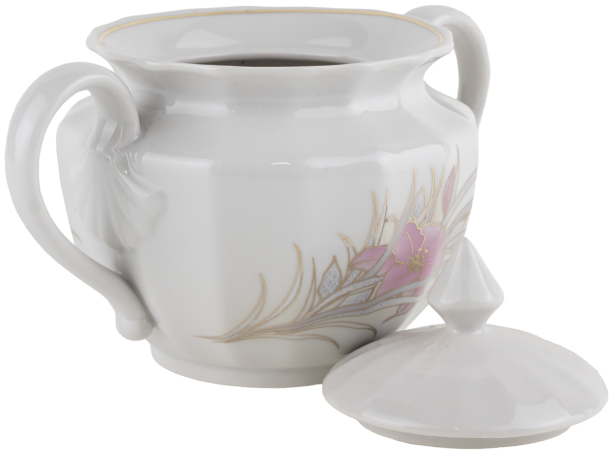 Сахарница с крышкой "Розовая лилия", фарфор, винтаж, Вербилки, СССР, 1965 - 1991 гг.