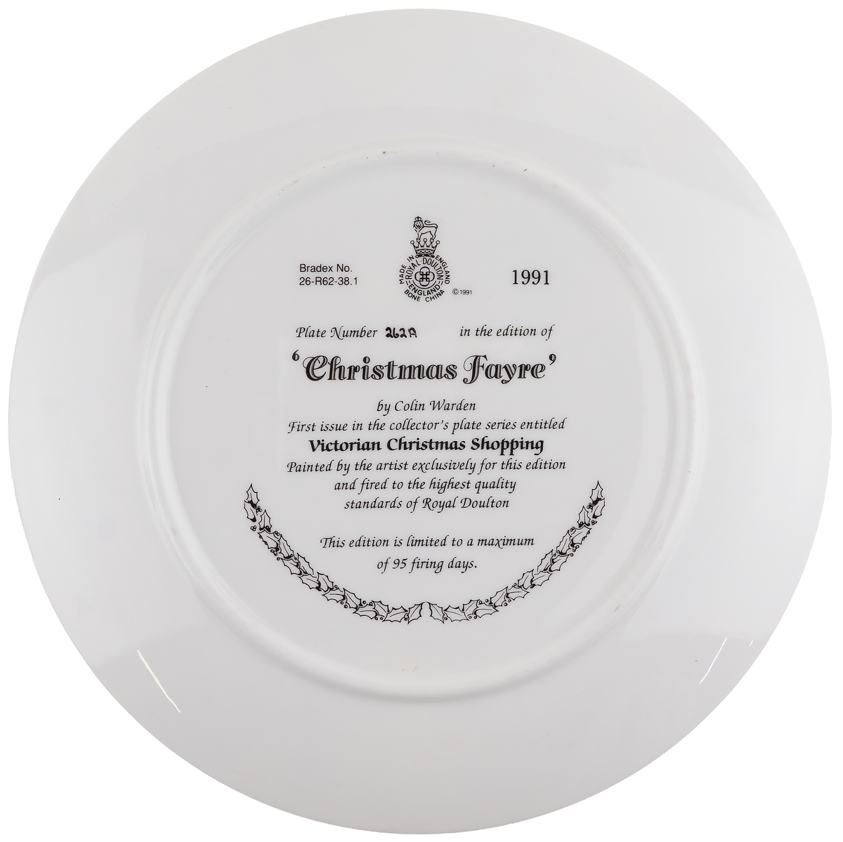 Декоративная тарелка настенная "Рождественская ярмарка", Колин Уорден . Винтажный фарфор Royal Doulton, Англия, 1991 год