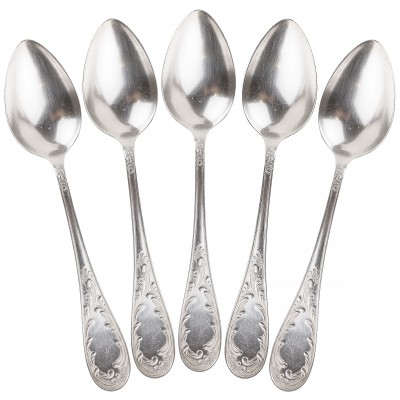 Набор из 5 столовых ложек, мельхиор, МНЦ, Кольчугинский завод цветных металлов, СССР, 1970 гг (с нюансом)