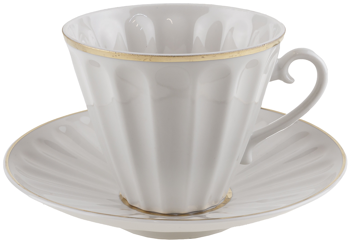 Чайная пара "Лучистая", Фарфор, винтаж, ЛФЗ, СССР, вторая половина 20 века