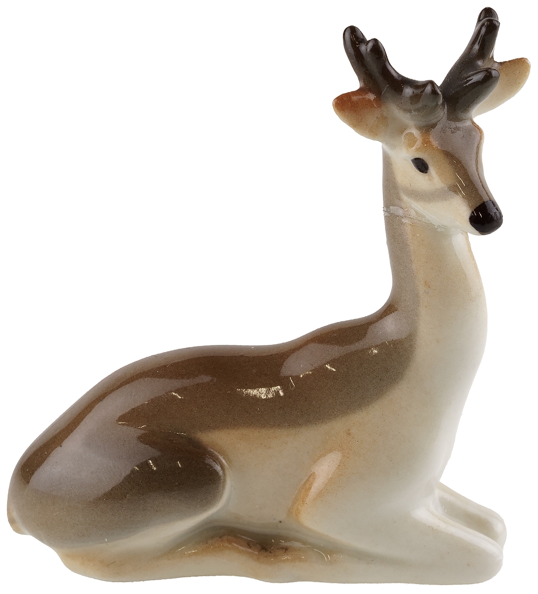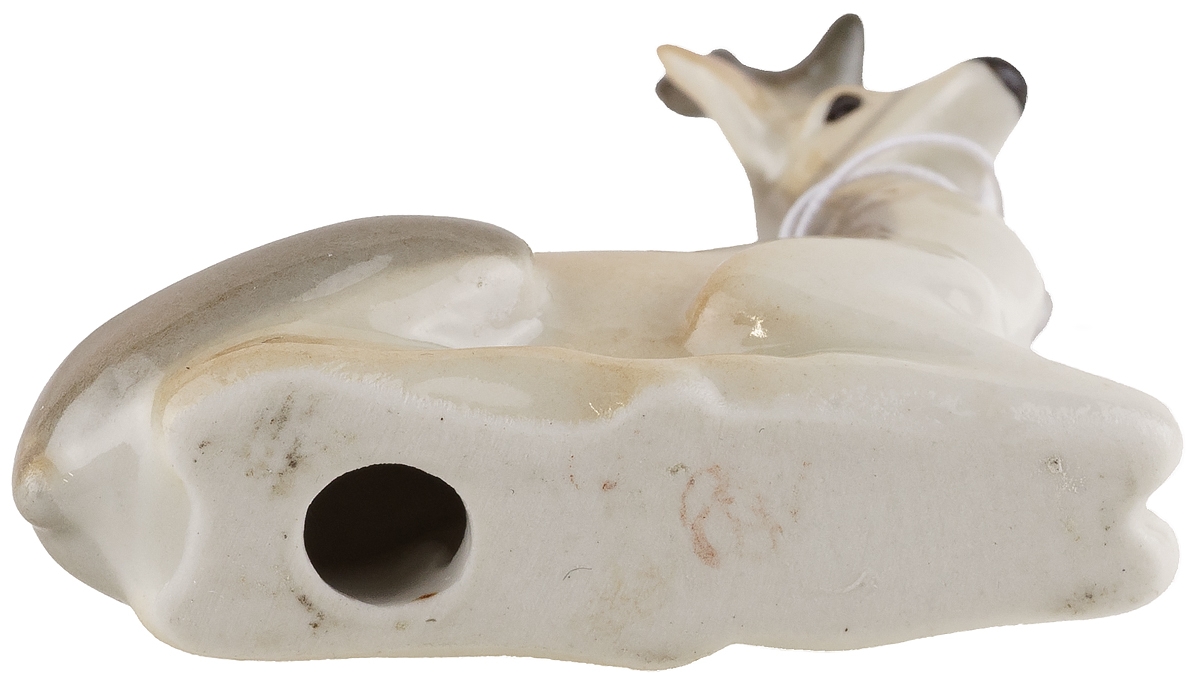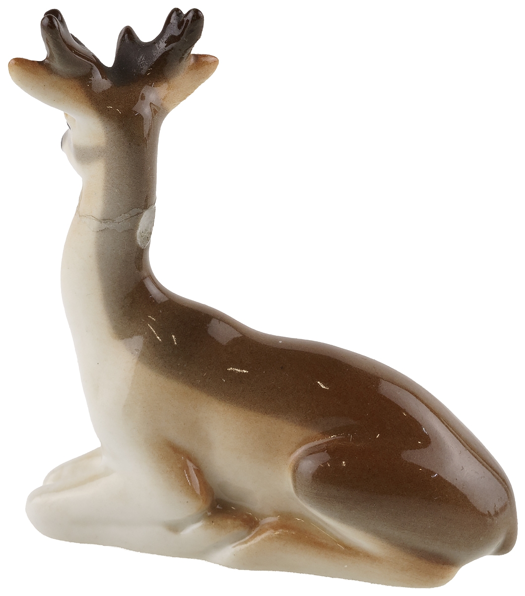 Статуэтка фарфоровая миниатюрная "Олень", винтаж, высота 6 см, ЛФЗ, СССР, вторая половина 20 века (с повреждением)