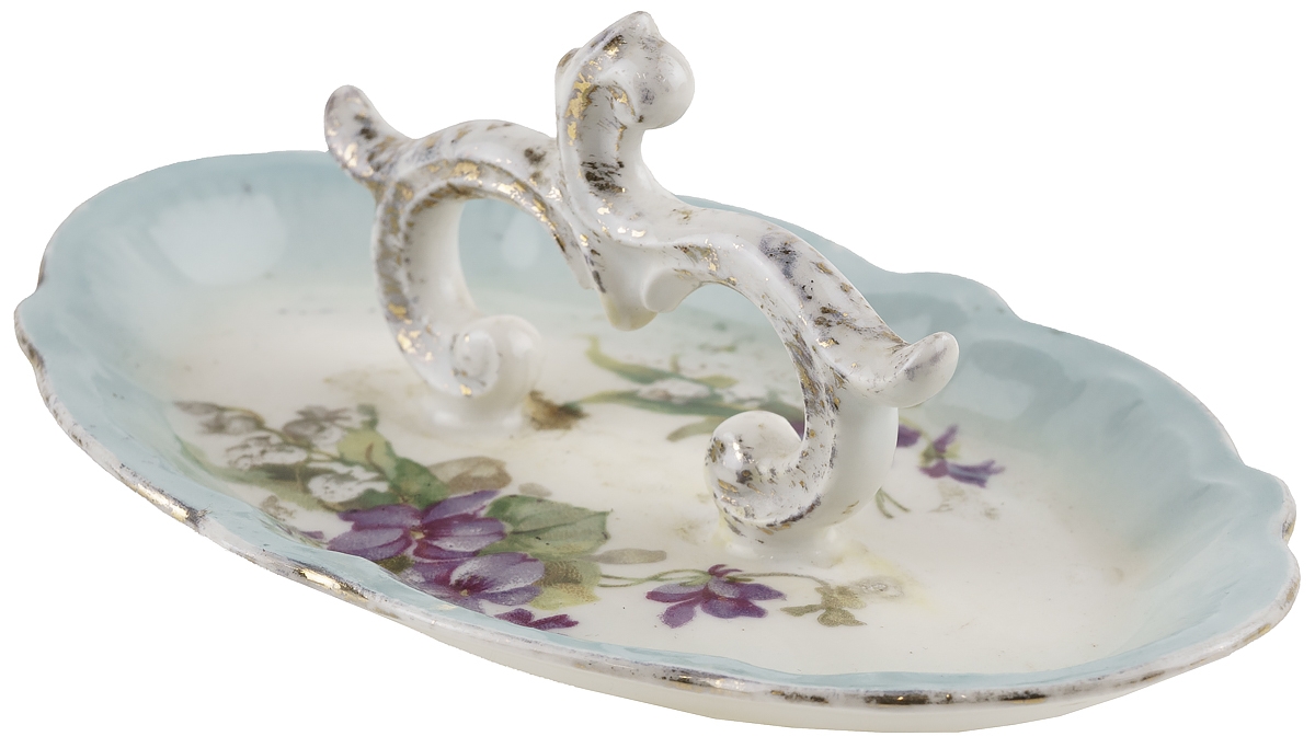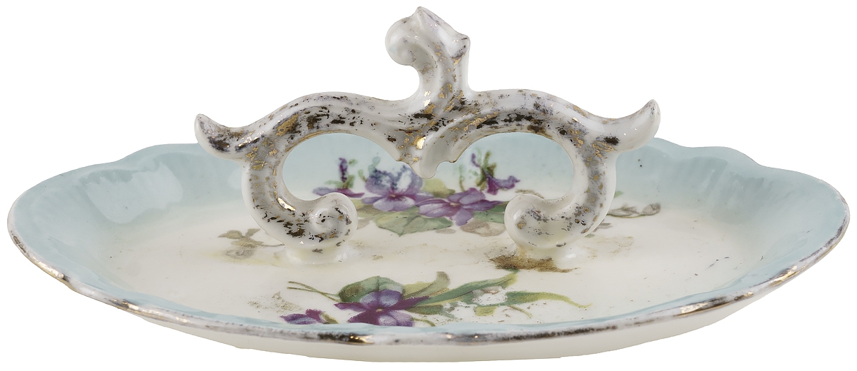 Тарелочка - подставка для украшений и колец антикварная "Фиалки и ландыши", фарфор Limoges, Франция, первая половина 20 века