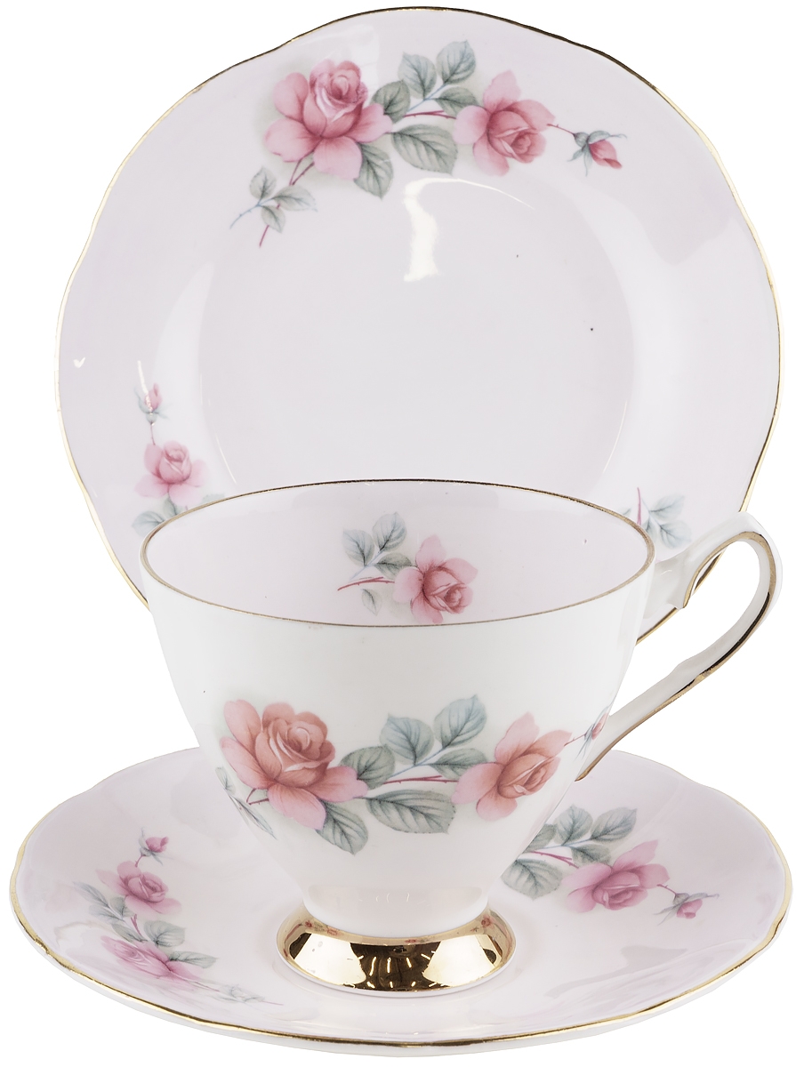 Великолепное чайное трио изящной формы "Роза Пинк Роуз".