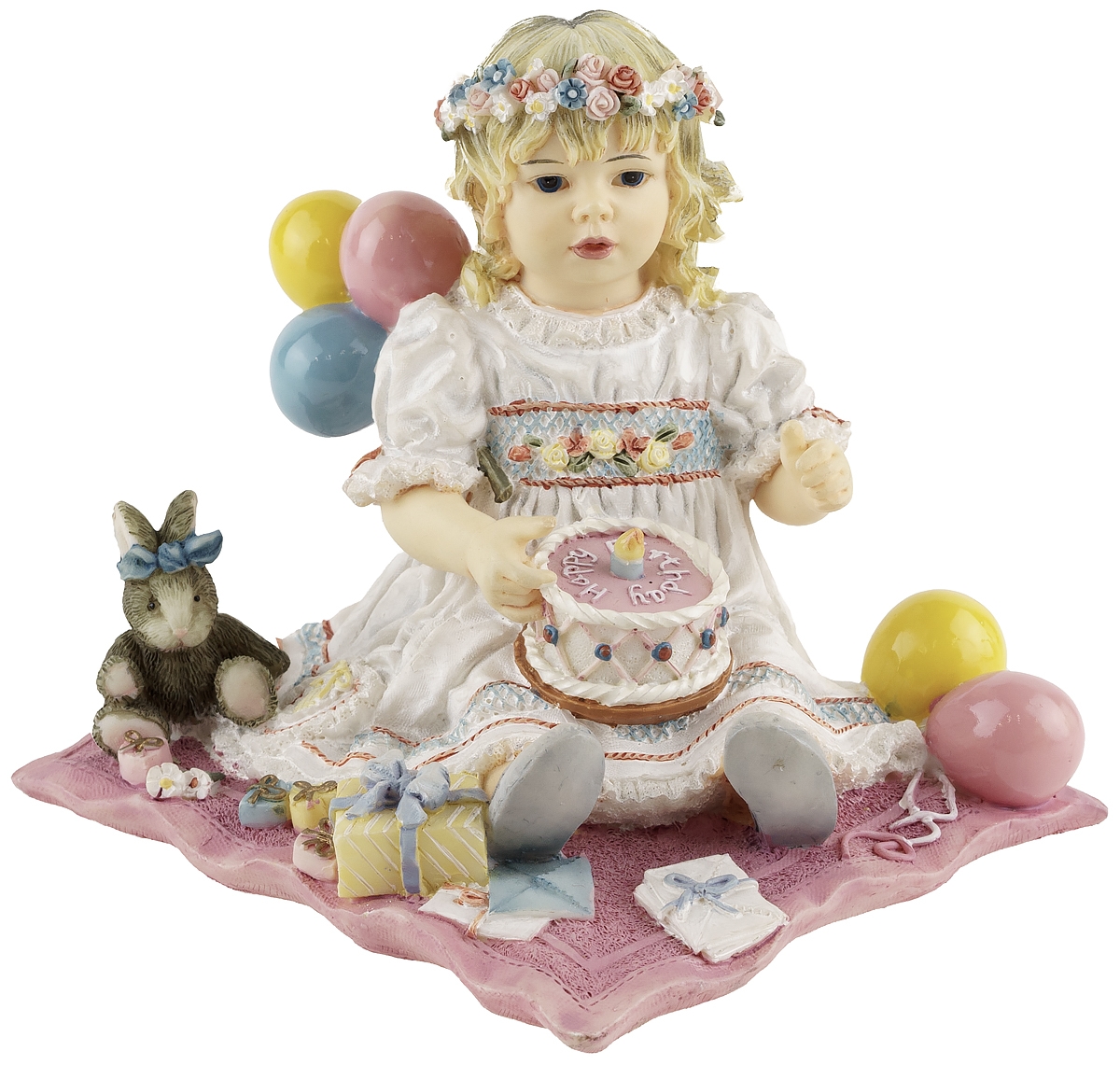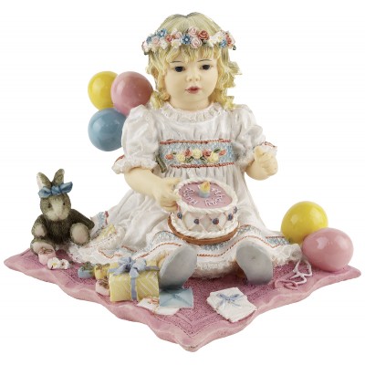 Статуэтка винтажная "День Рождения", девочка с тортом, высота 8 см, композит, Leonardo collection, Великобритания, конец 20 века