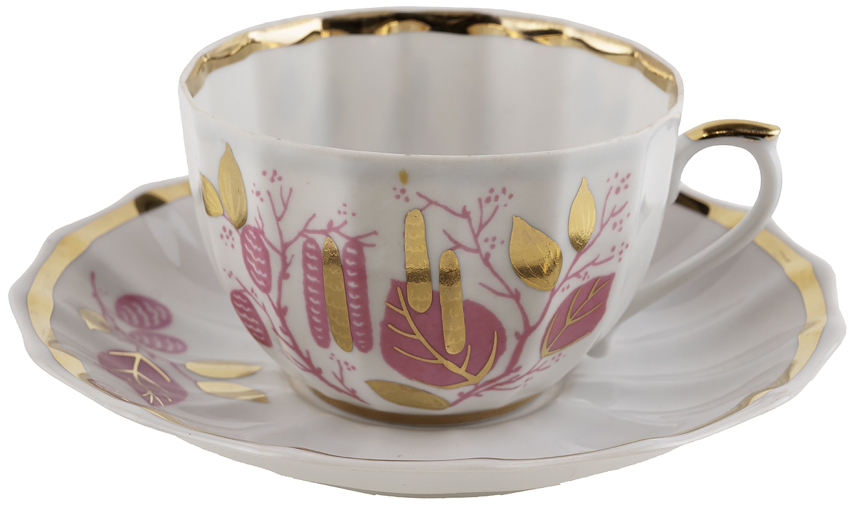 Чайная пара "Золотые сережки", фарфор, винтаж, Вербилки, СССР, 1965-1991 гг.