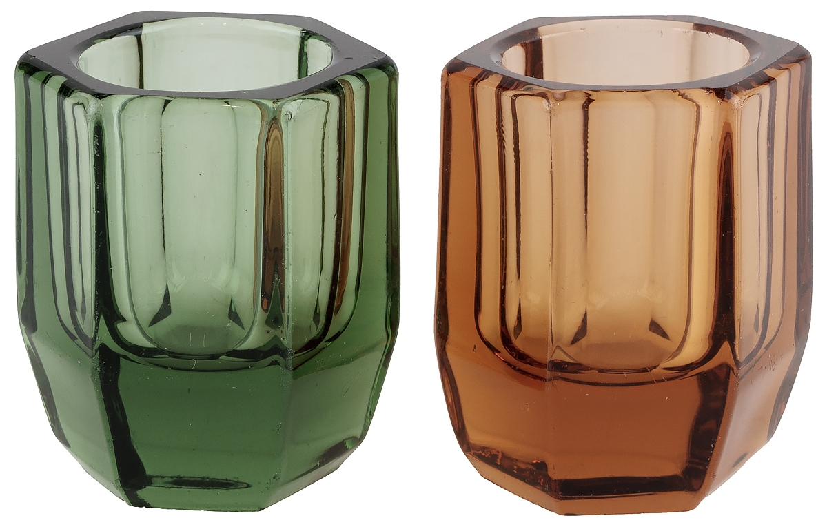 Набор винтажных стопок из толстого цветного стекла.