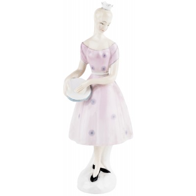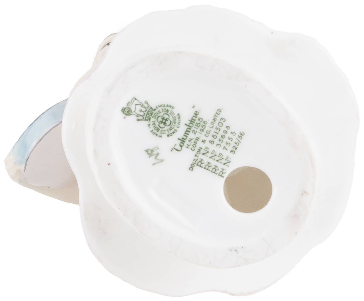 Статуэтка "Коломбина", девушка с бубном. Высота 17,5 см, костяной фарфор Royal Doulton, Великобритания, винтаж, 1957-1969 гг.