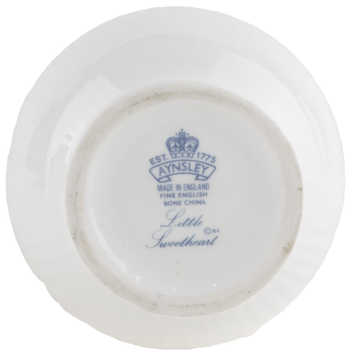 Маркировка: надглазурное клеймо синего цвета "Aynsley. Made in England. Fine Bone China", наклейка.