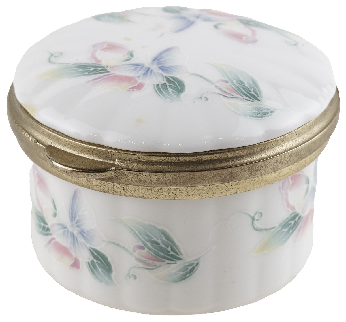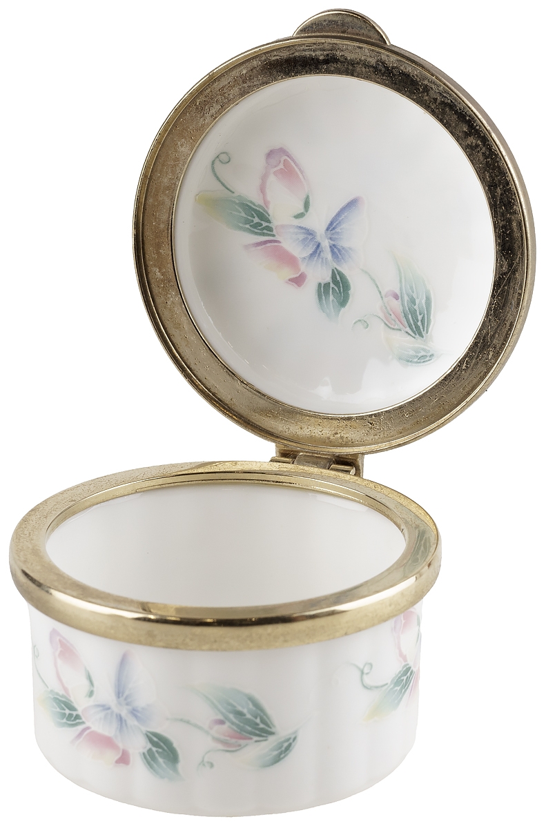 Небольшая шкатулка для колец или мелочей "Little Sweetheart", расписана цветами и бабочками в пастельных тонах.