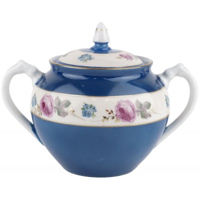 Сахарница "Голубые небеса", фарфор, винтаж, Дулево, СССР, 1937-1940 гг