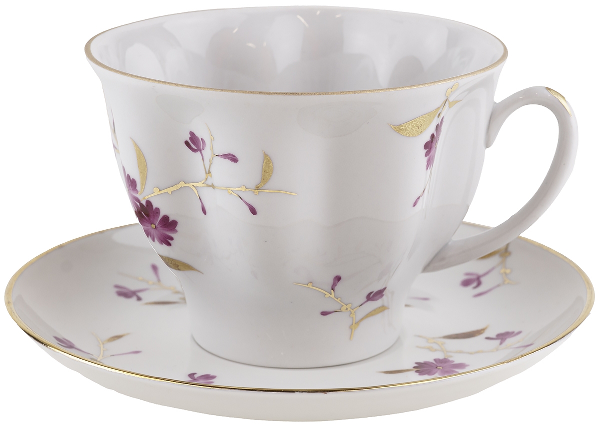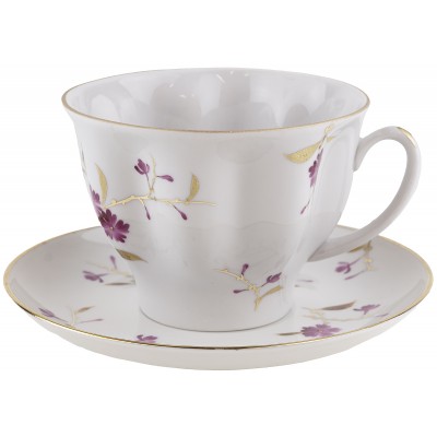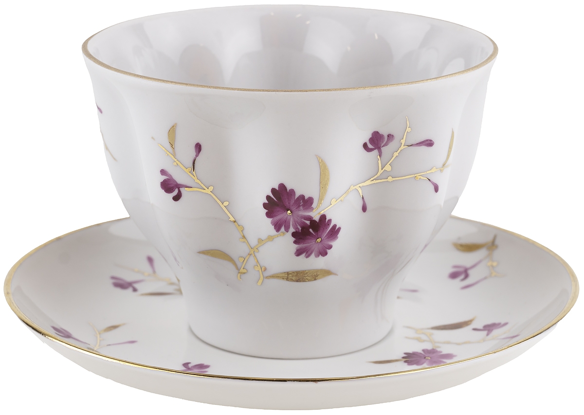 Чайная пара "Цветы на ветках", Фарфор, винтаж, ЛФЗ, СССР, вторая половина 20 века