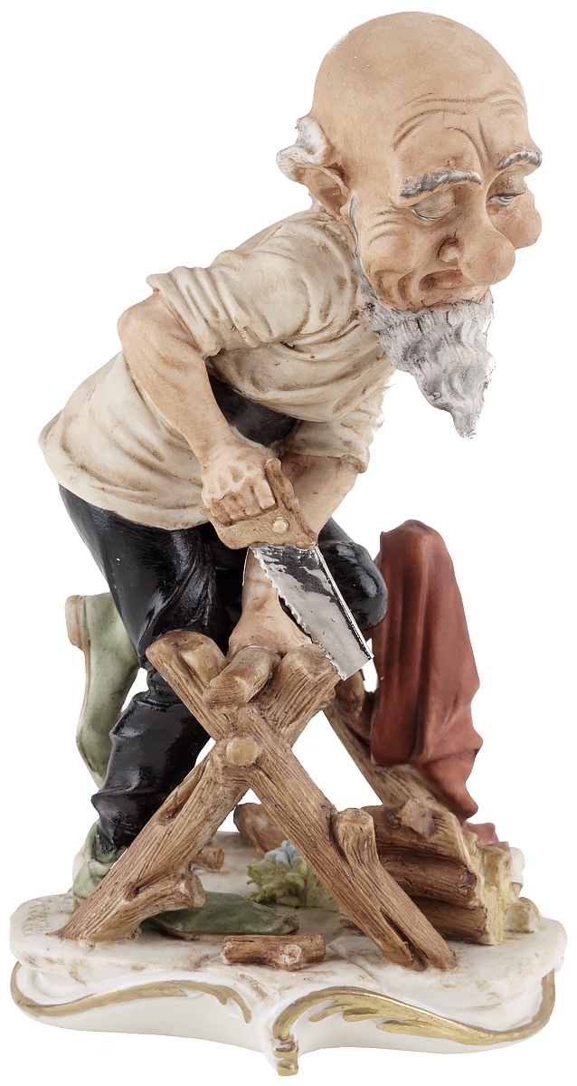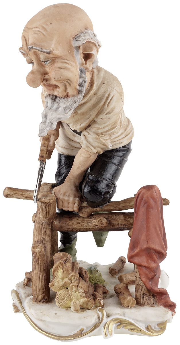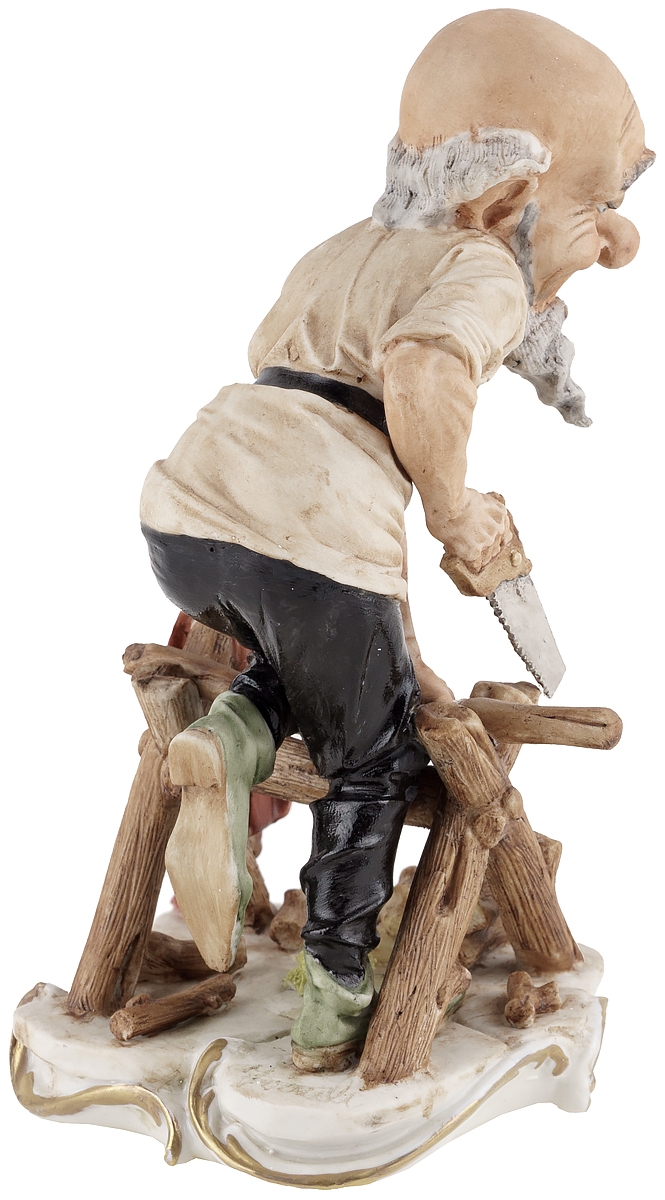 Великолепная жанровая статуэтка "Гном пилит дрова" знаменитой неаполитанской фабрики фарфора Capodimonte. Этот коллекционный фарфор, отличает тончайшая проработка мелких деталей и повышенное внимание авторов к жесту, позе и выражению лица персонажей.