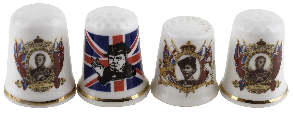 Комплект коллекционных наперстков "Британия", 4 шт. Фарфор, Великобритания, вторая половина 20 века