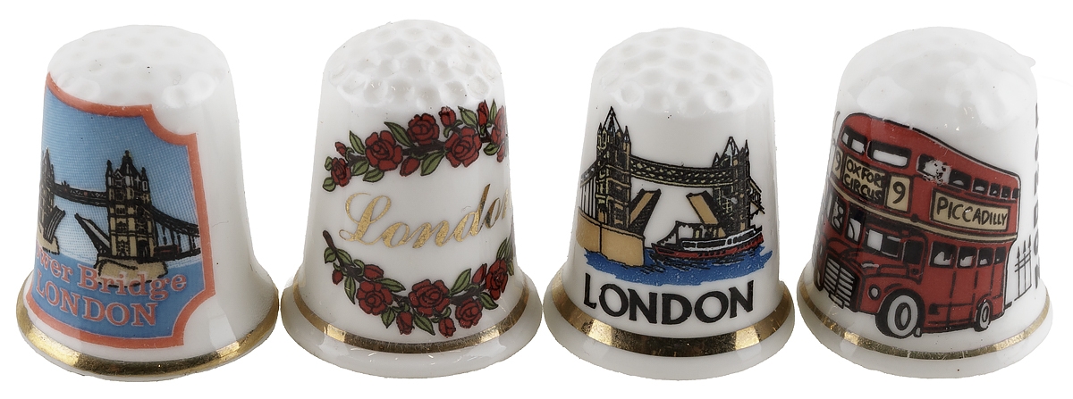Комплект коллекционных наперстков "Лондон", 4 шт. Фарфор, Великобритания, вторая половина 20 века
