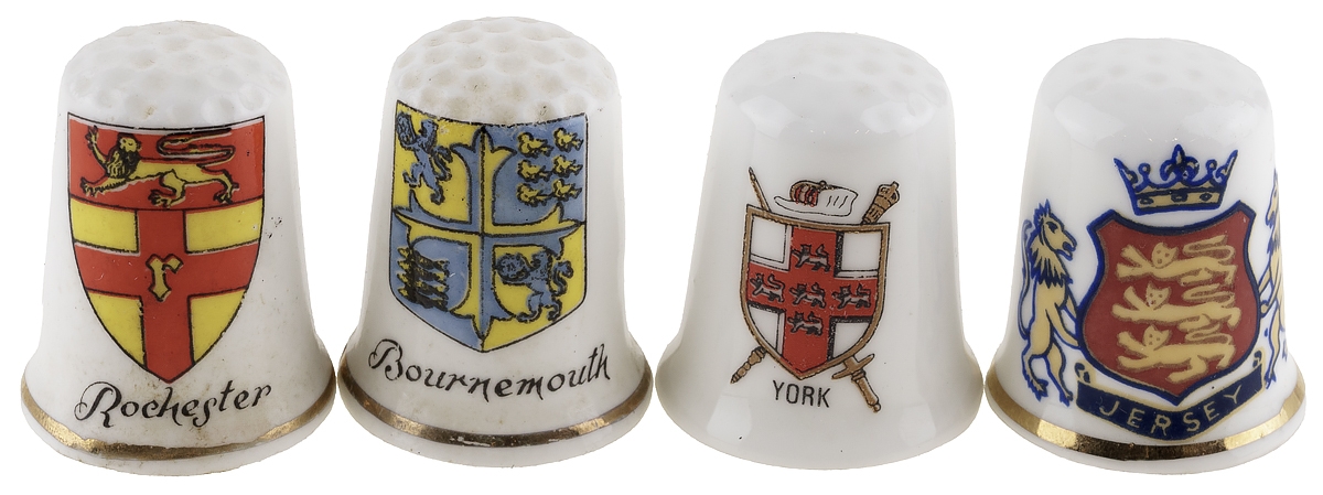 Комплект коллекционных наперстков "Гербы", 4 шт. Фарфор, Великобритания, вторая половина 20 века