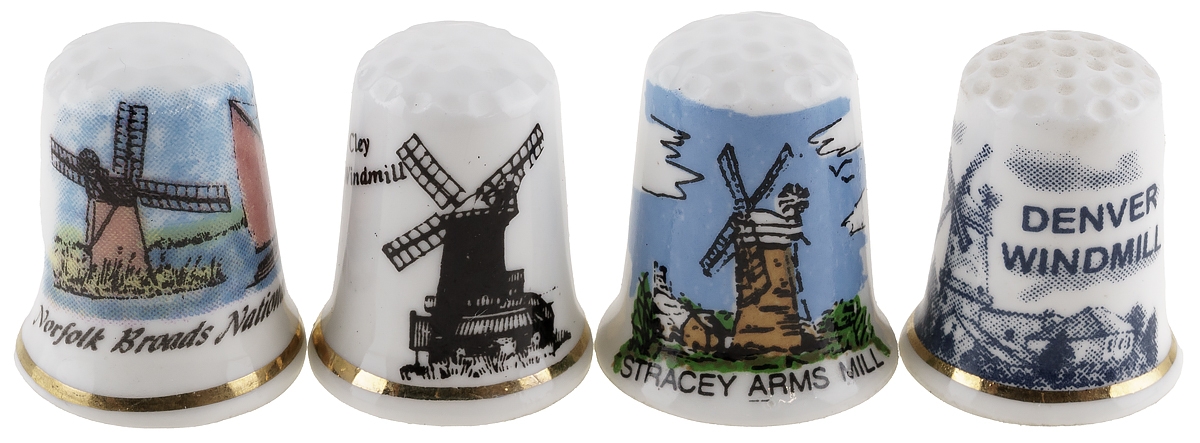 Комплект коллекционных наперстков "Мельницы", 4 шт. Фарфор, Великобритания, вторая половина 20 века