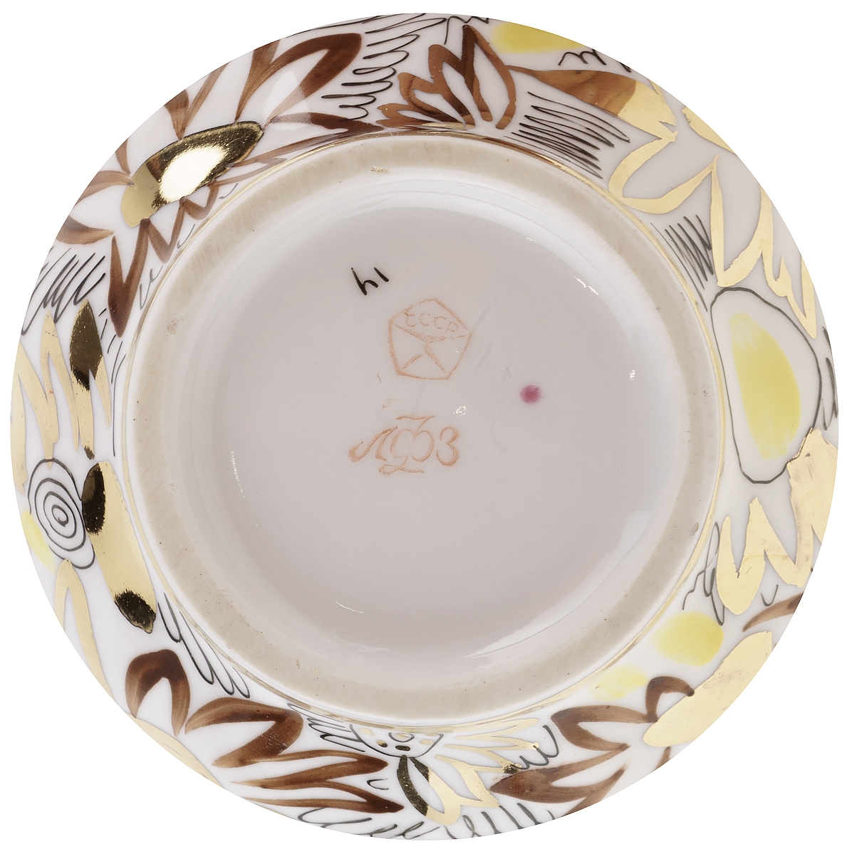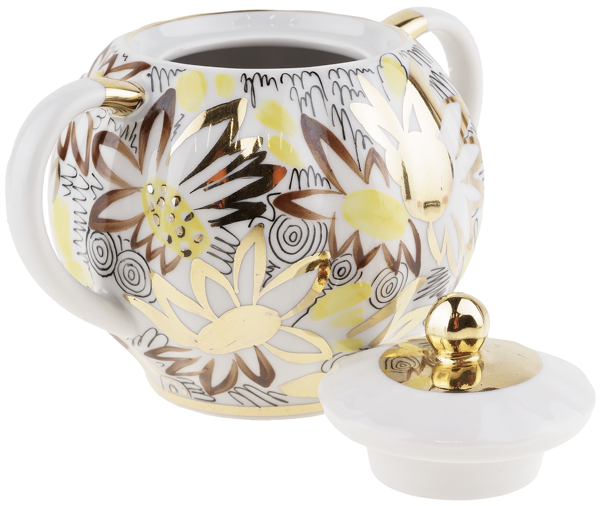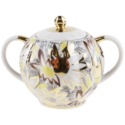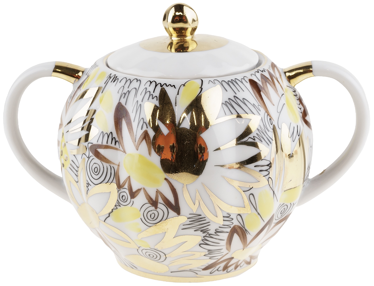 Сахарница "Золотые ромашки", Фарфор, винтаж, ЛФЗ, СССР, вторая половина 20 века
