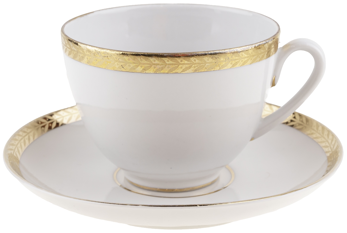 Чайная пара "Белая ночь. Колосок", Фарфор, винтаж, ЛФЗ, СССР, вторая половина 20 века