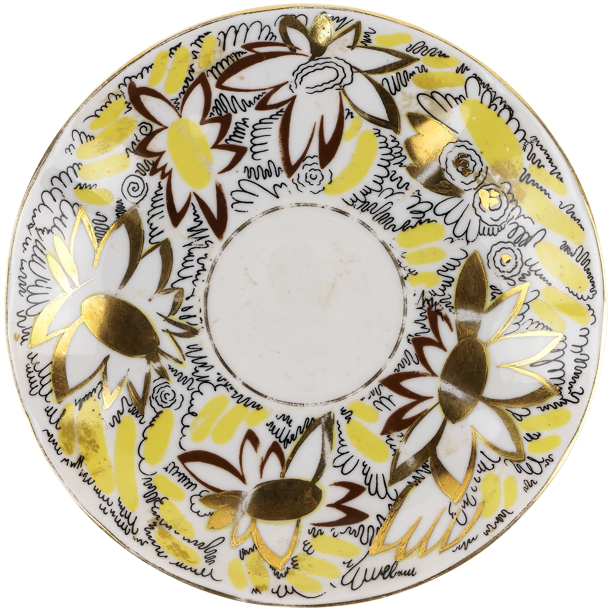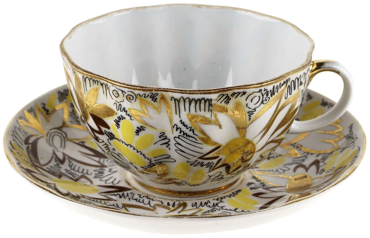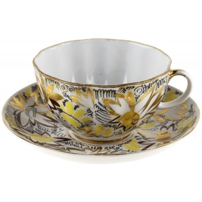Чайная пара "Золотые ромашки", Фарфор, ЛФЗ, СССР, вторая половина 20 века (трещина)