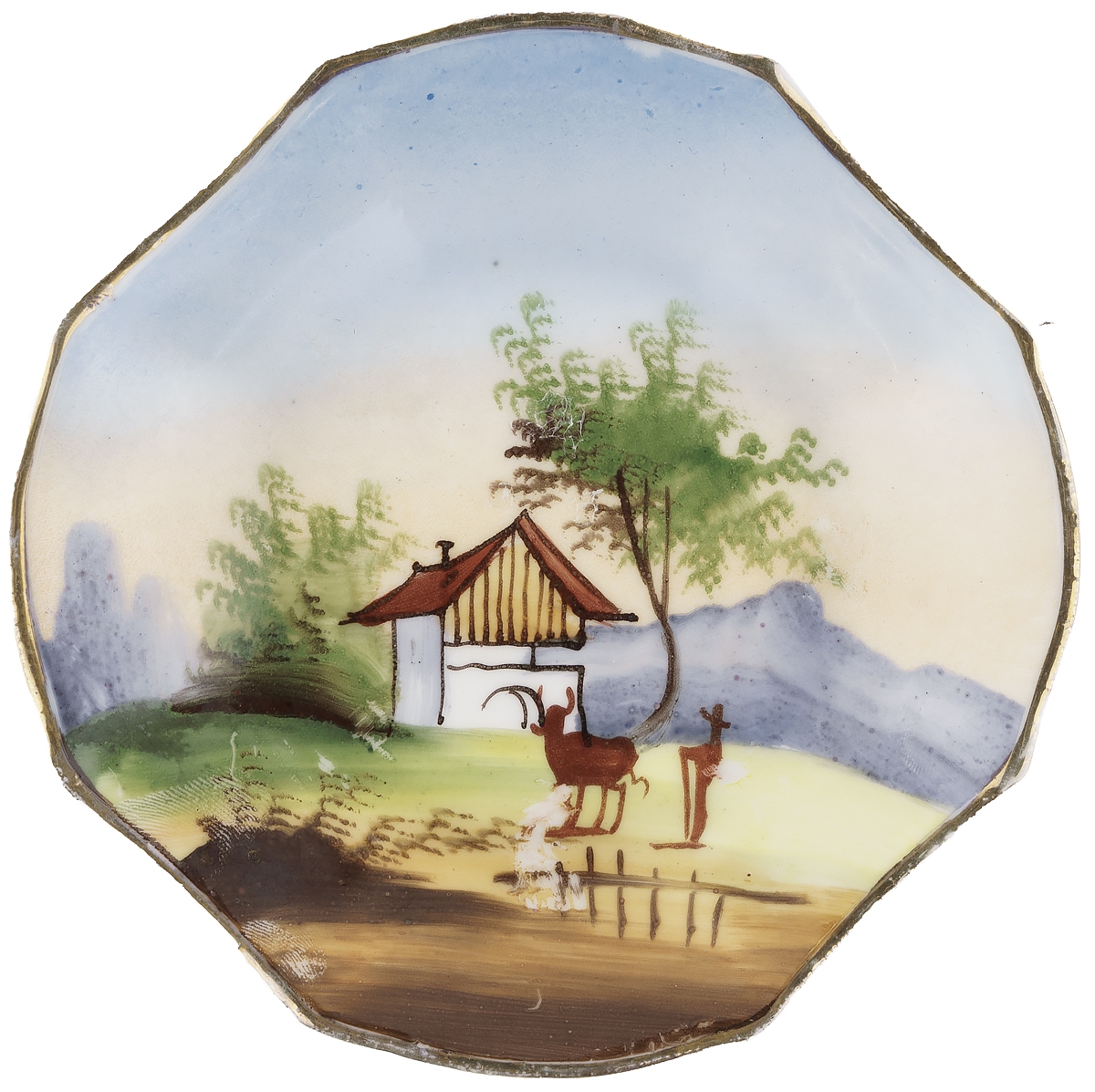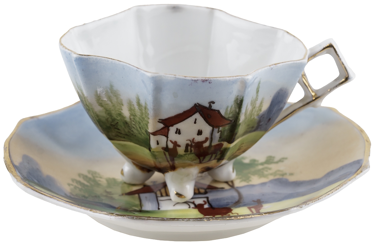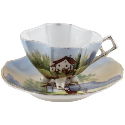 Кофейная пара для эспрессо "Домик в деревне". Фарфор, Великобритания, винтаж, середина 20 века