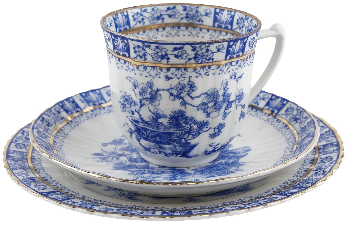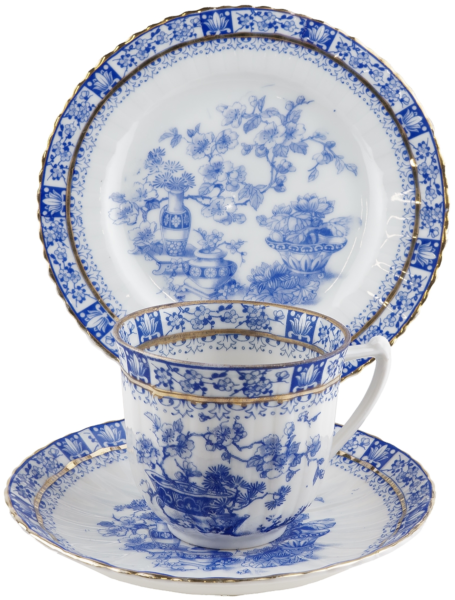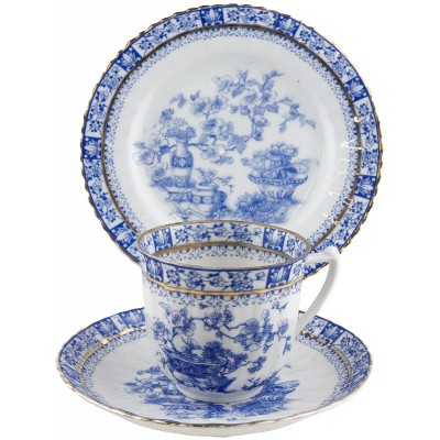 Чайное трио антикварное "Голубой Китай". Фарфор, Великобритания, конец 19 века