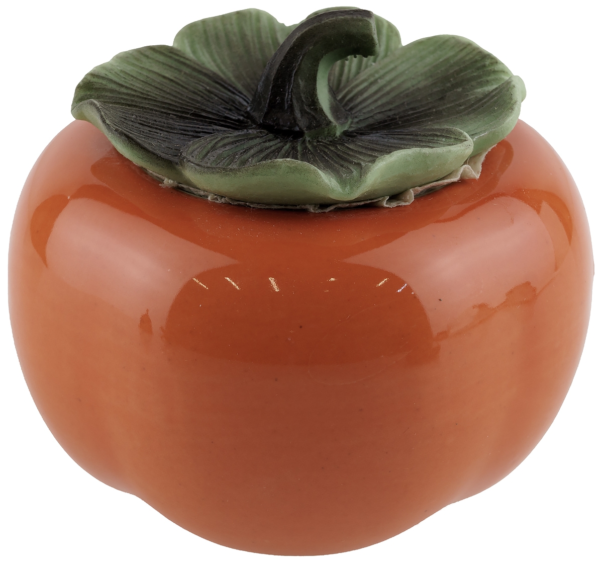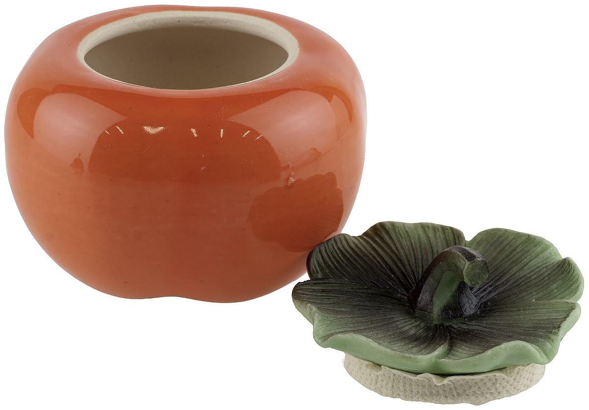 Небольшая баночка для хранения чая с плотной крышкой, выполена в форме плода хурмы. Можно использовать для других сыпучих продуктов или как шкатулку.