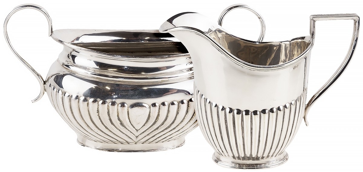Сливочник и сахарница, набор для сервировки чайного стола антикварный. Металл, серебрение. Sheffield. Металл, серебрение. Великобритания, начало 20 века