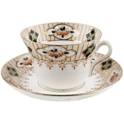Чайная пара "Виктория" в стиле имари, фарфор, винтаж, Gladstone, Великобритания, 1930 - е гг(трещина)