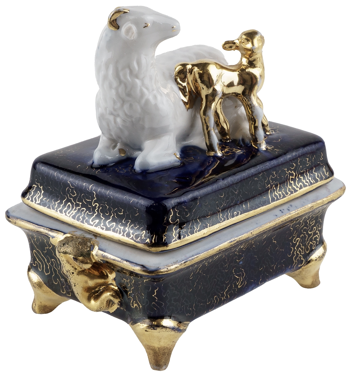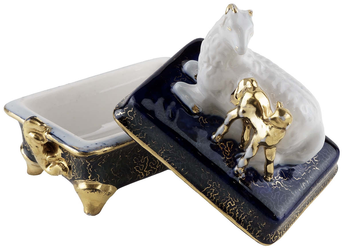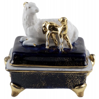 Редкая антикварная шкатулка для мелочей "Овечка с ягненком".