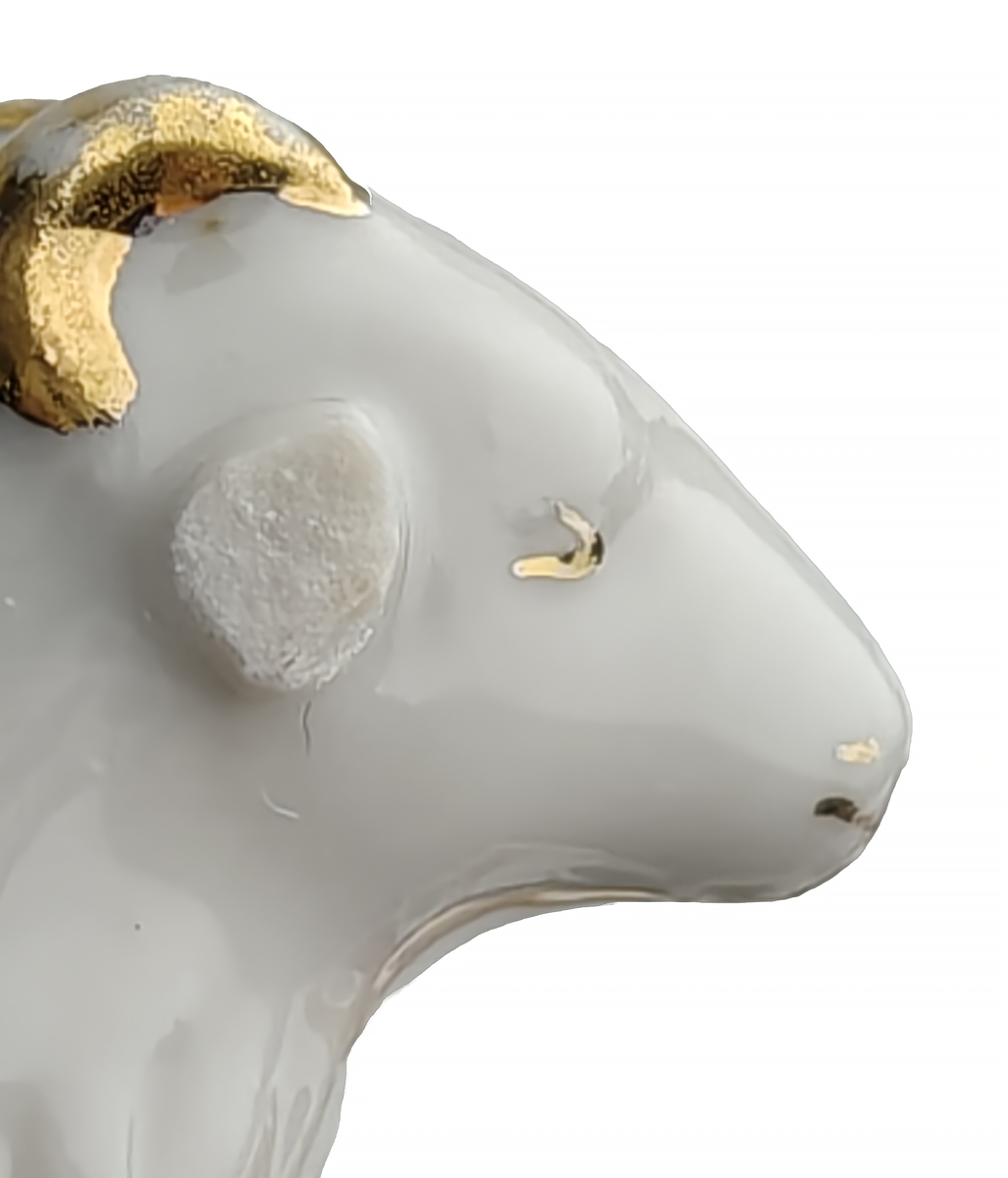 Сохранность хорошая, отколоты ушки у овечки, одно ушко у ягненка, голова у одной ящерки. Потретость золочения в соответствии с возрастом