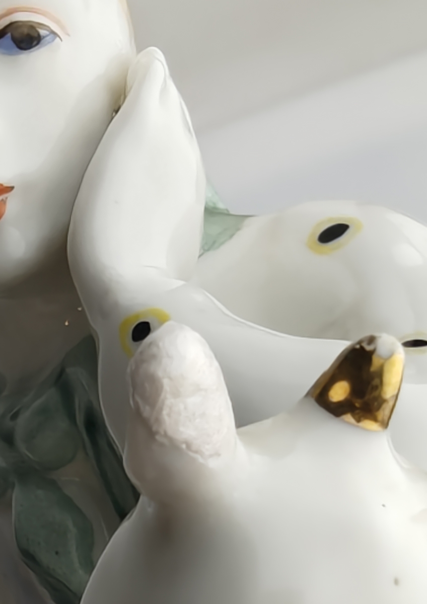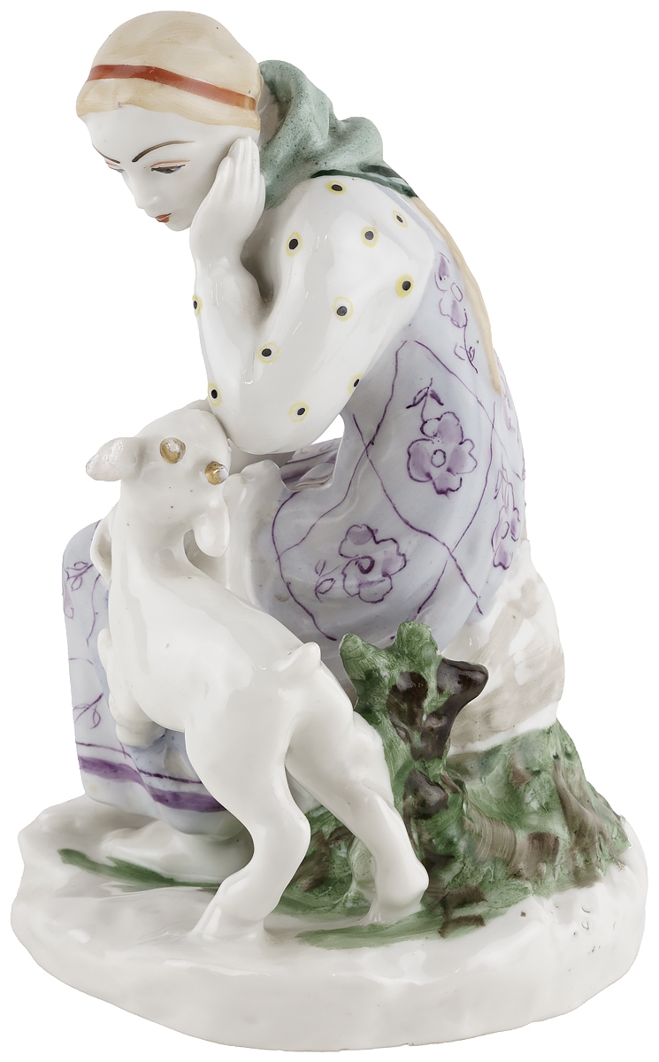 Сохранность хорошая, малозаметная реставрация на ухе у козленка, потретость золочения в соответствии с возрастом, в остальном без повреждений.