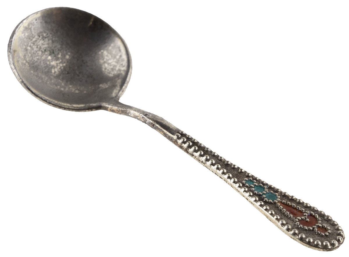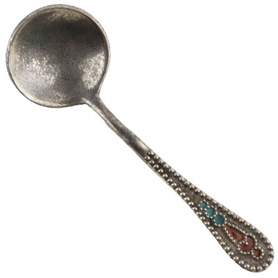 Маленькая винтажная ложечка для соли, украшенная разноцветной эмалью.