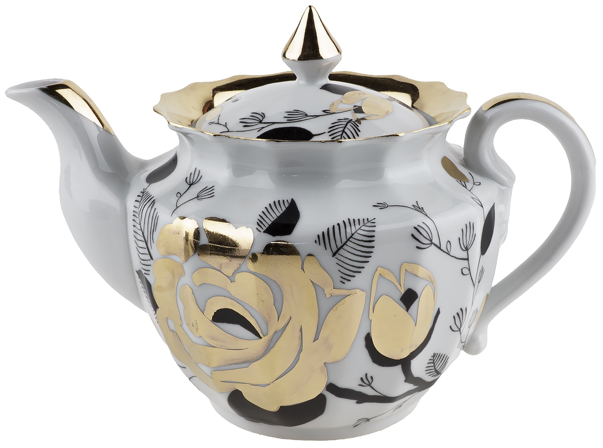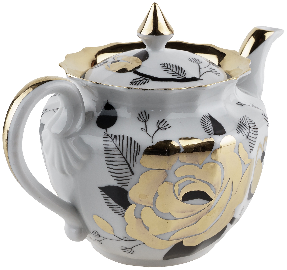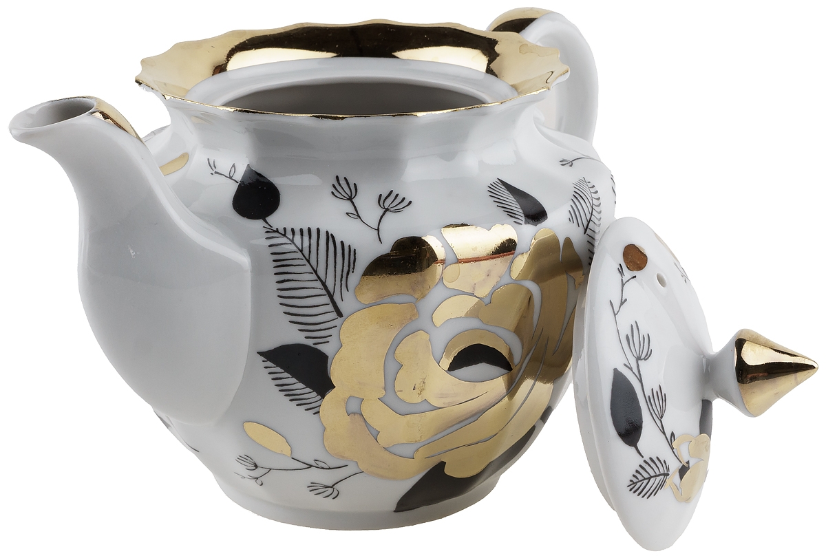 Чайник заварочный "Золотая роза", фарфор, винтаж, Вербилки, СССР, 1965-1991 гг.