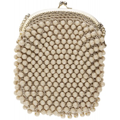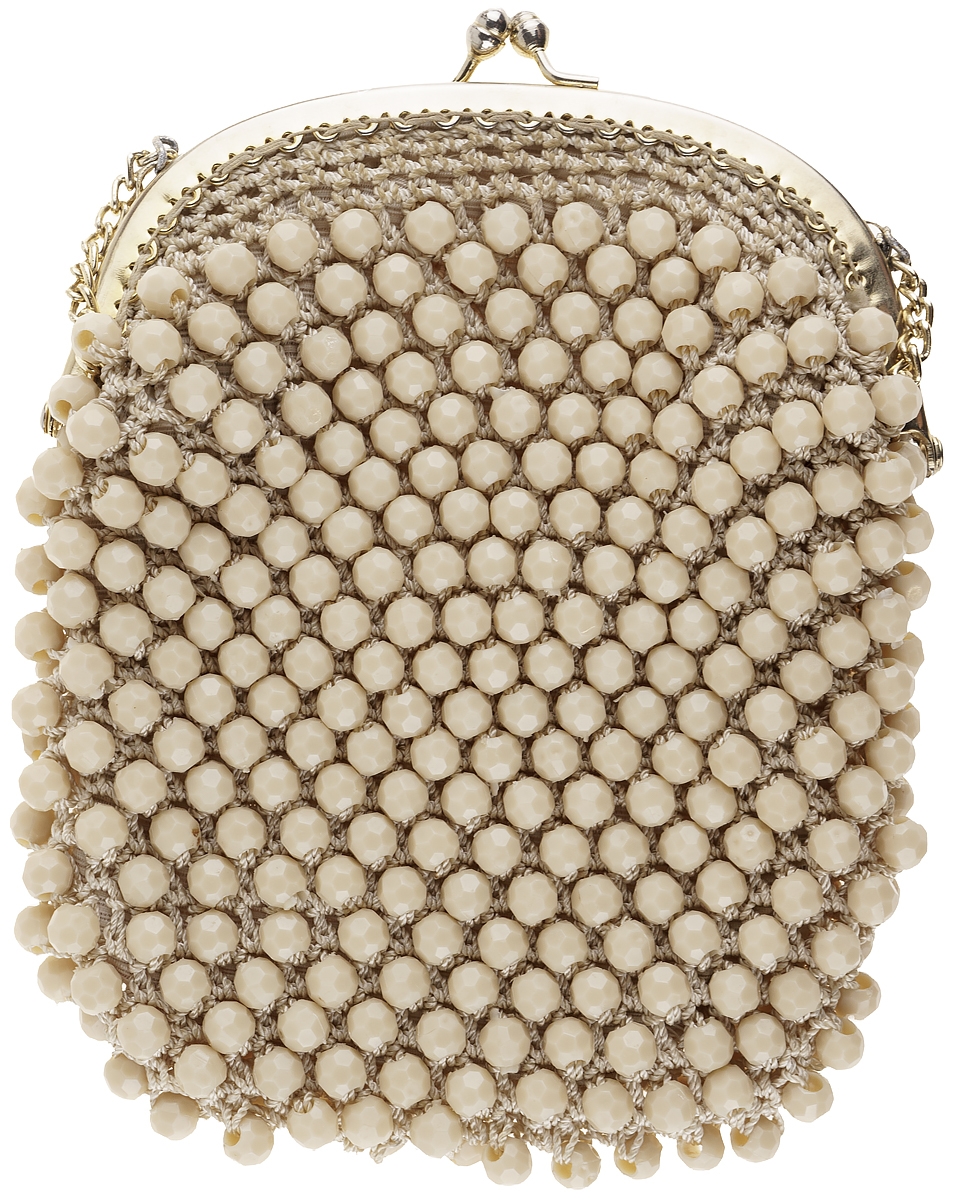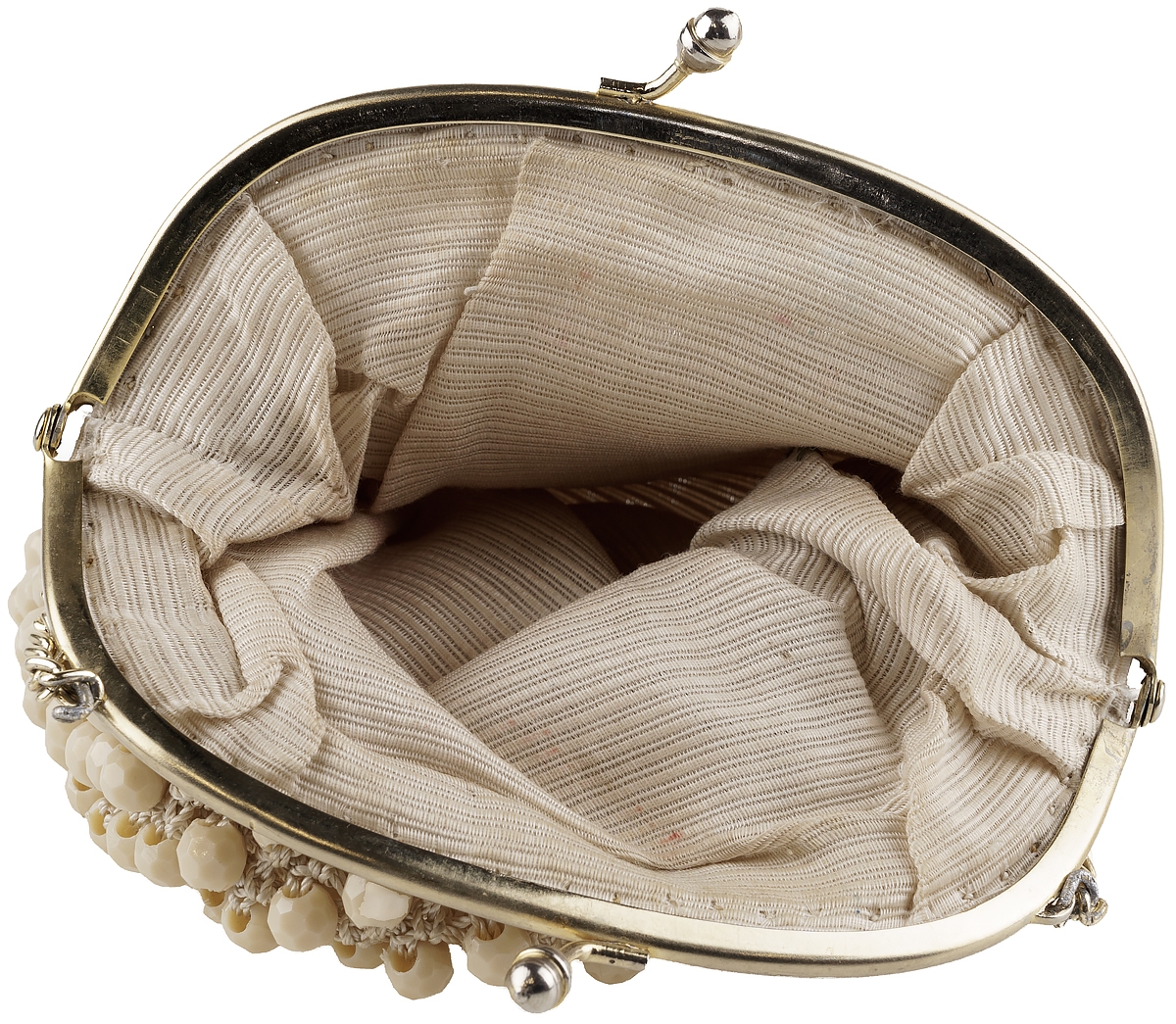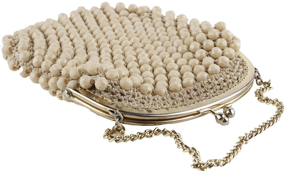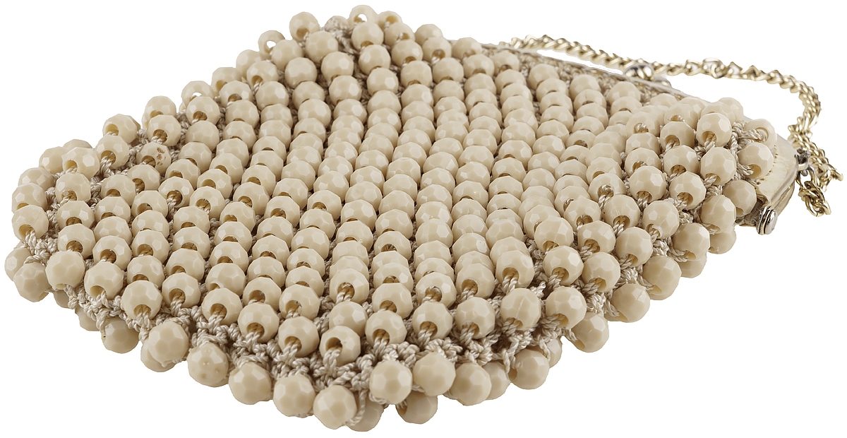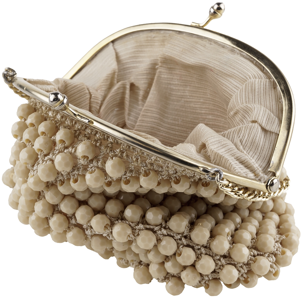 Эффектная антикварная дамская сумочка-кошелек. Ручная вязка с бусинами цвета слоновой кости.