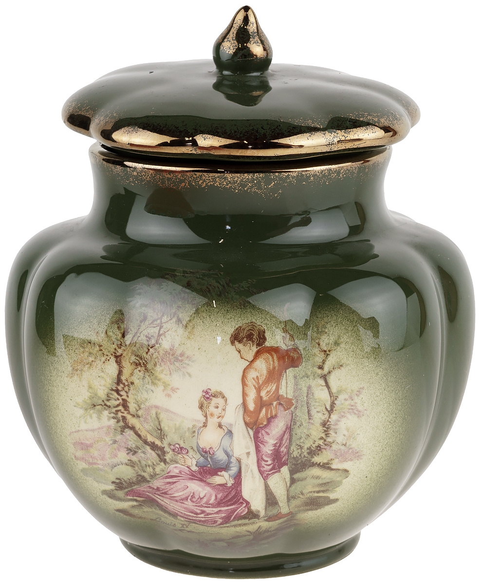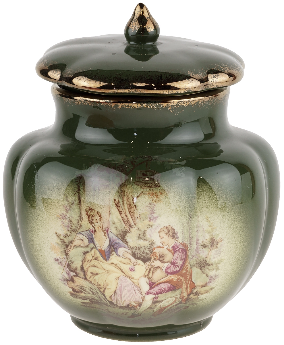 Сохранность хорошая. На кольце основания - скол глазури (абсолютно не виден). Крышка не плотно сидит на тулове вазы.