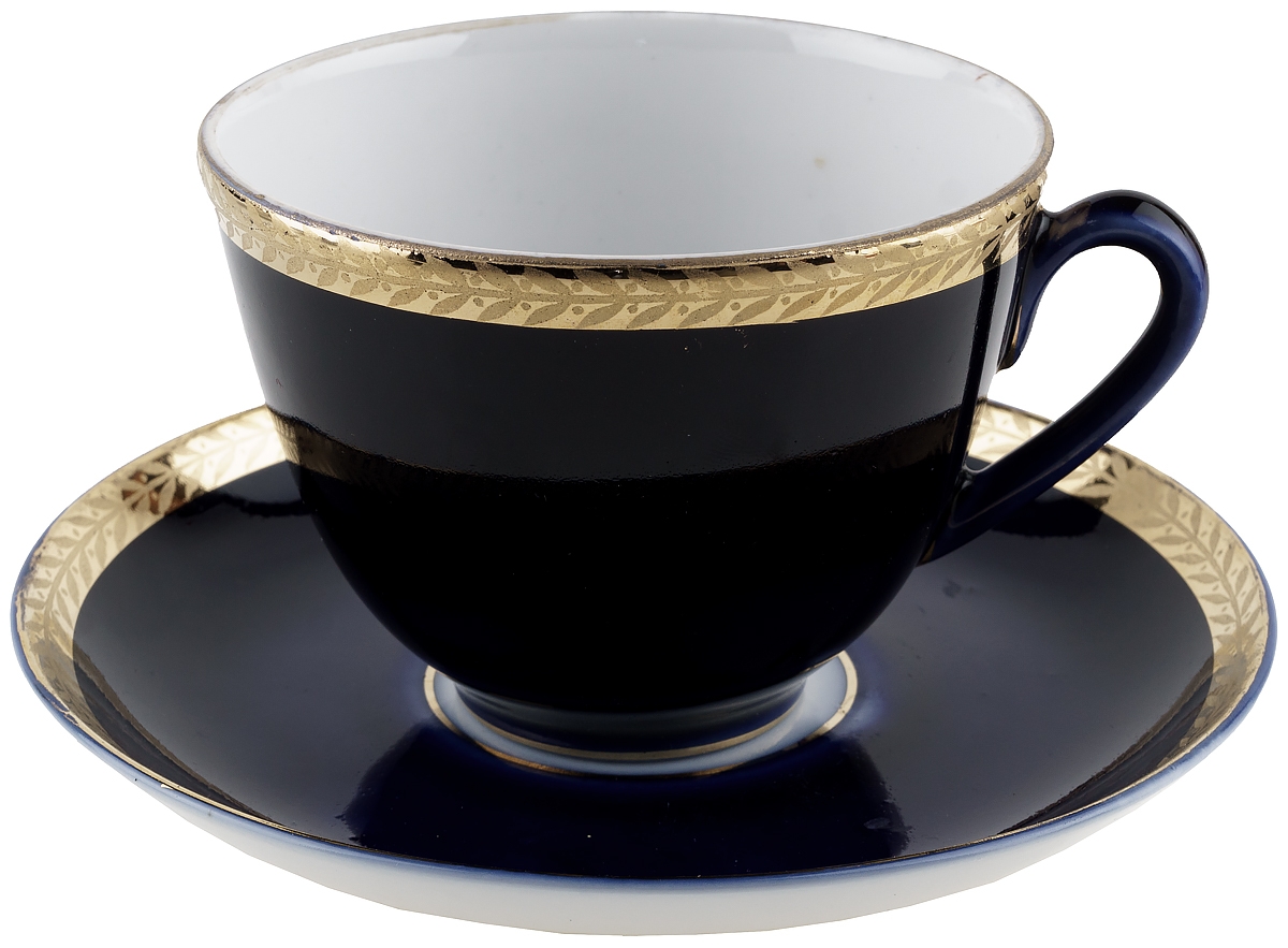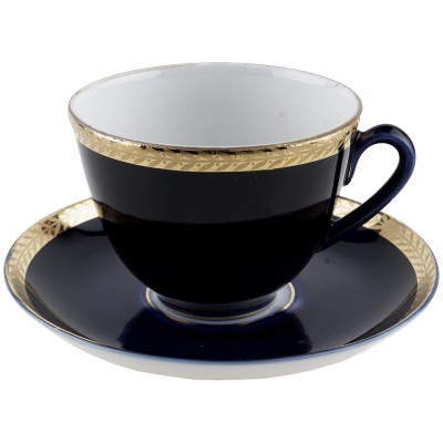Чайная пара "Ночь. Колосок", Фарфор, ЛФЗ, СССР, вторая половина 20 века (с нюансом)