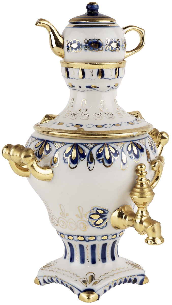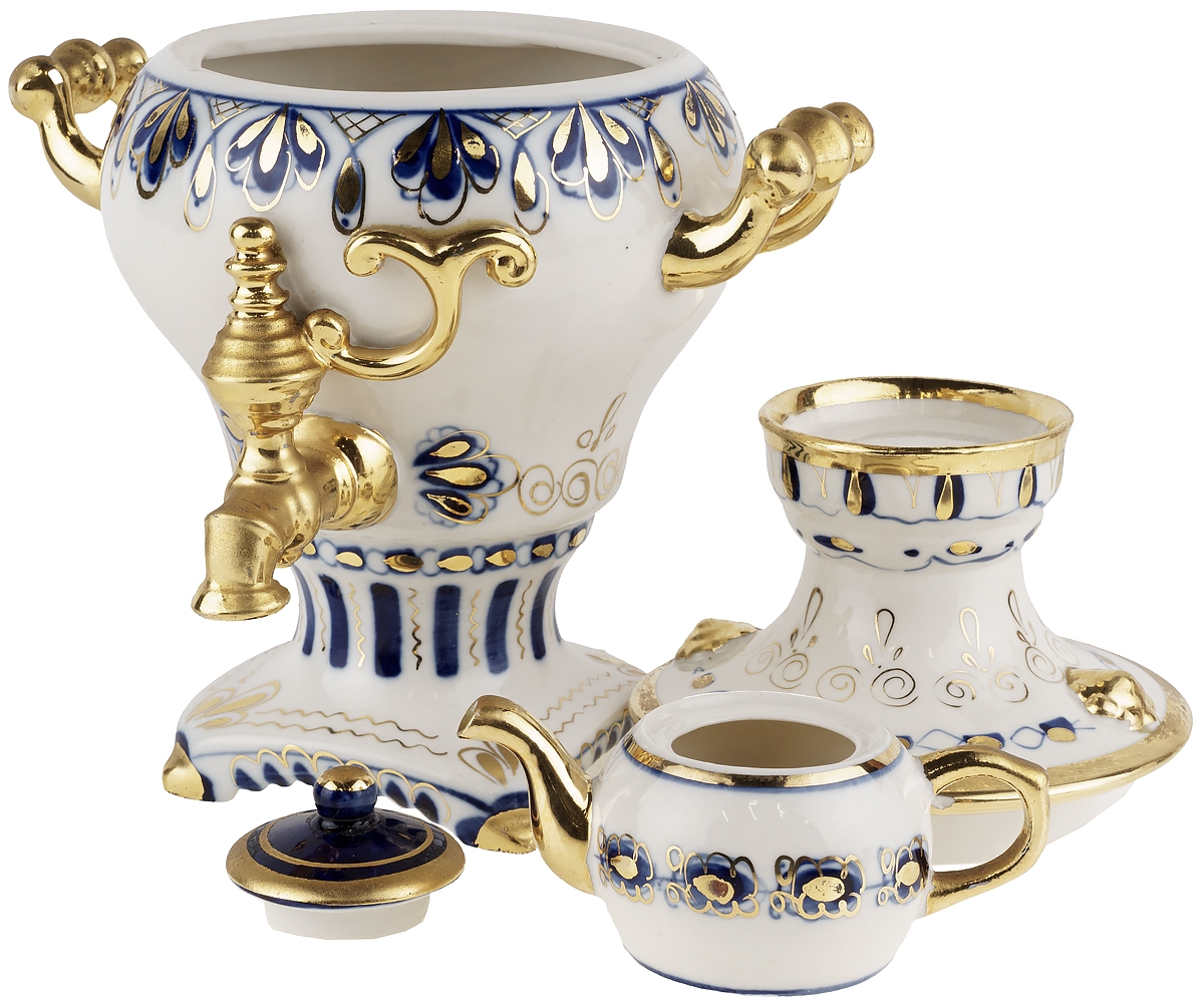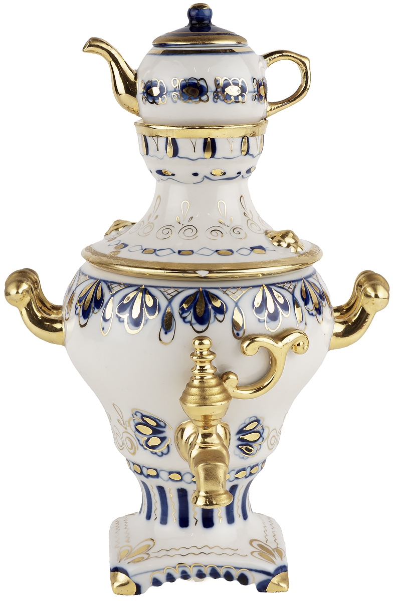 Самовар декоративный с чайничком, фарфор, Гжель, СССР, 1970-е гг. (с нюансами)