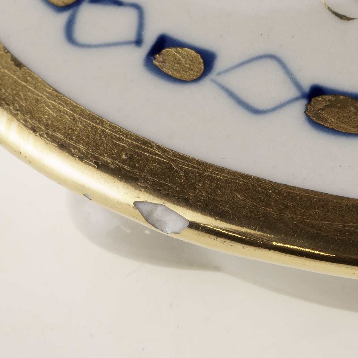 Сохранность хорошая, маленький скол по ободу средней части, на основании снизу малозаметная волосяная трещина.
