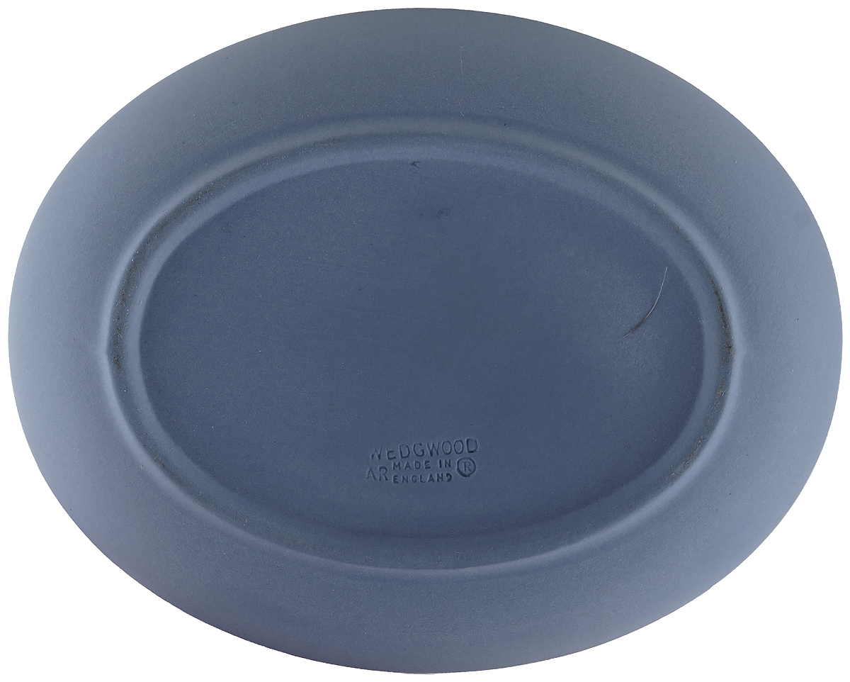 Шкатулка для мелочей овальная. Фарфор Wedgwood, голубой бисквит, Великобритания, винтаж, конец ХХ века